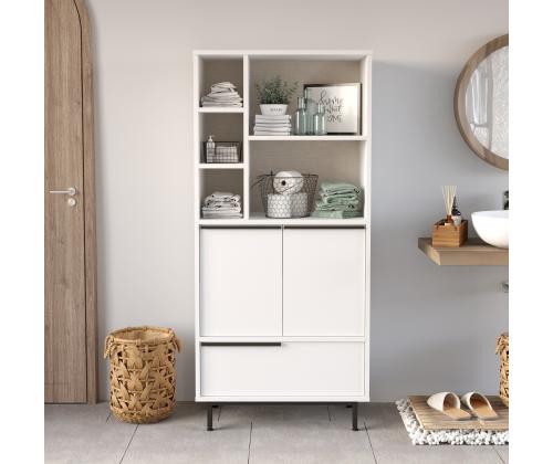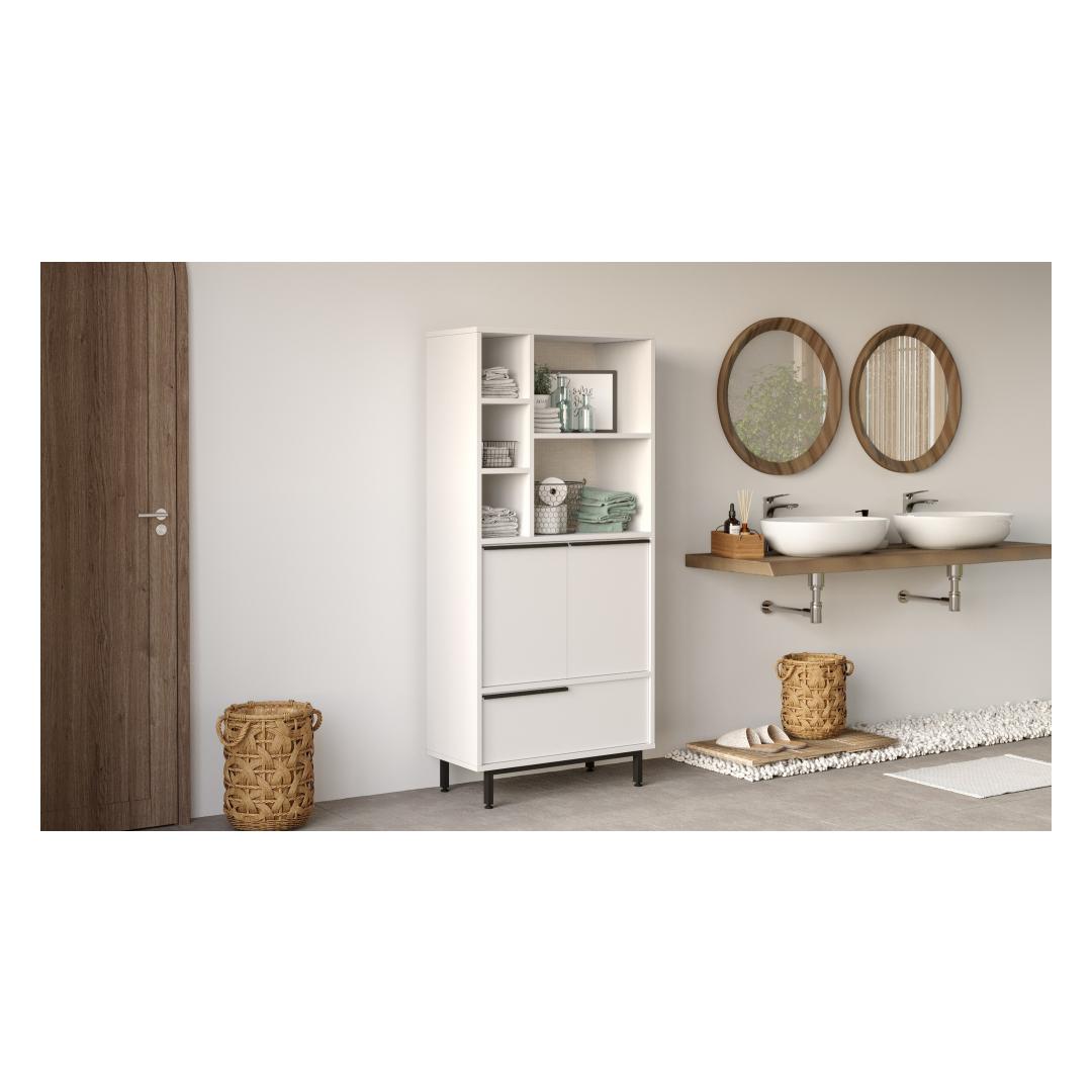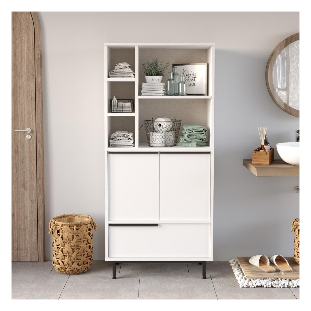 With its sleek and modern design, this cabinet will effortlessly enhance the aesthetic appeal of your bathroom. The crisp white color adds a touch of elegance, creating a serene and inviting atmosphere. The spacious interior provides ample storage space for all your bathroom essentials, keeping your space organized and clutter-free.