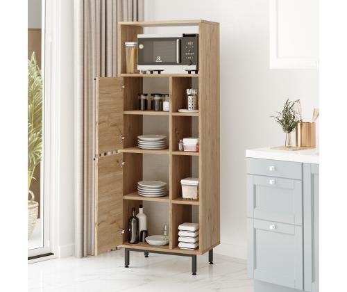 Elegant Design: The sleek and modern design of this cabinet will instantly transform your kitchen into a sophisticated space. The walnut color adds a touch of warmth and elegance, making it a perfect fit for any decor style.