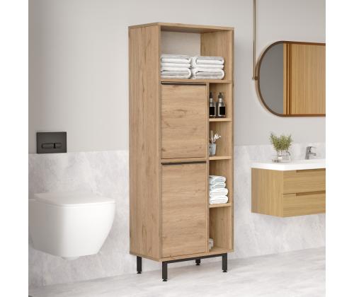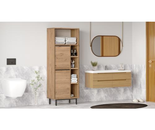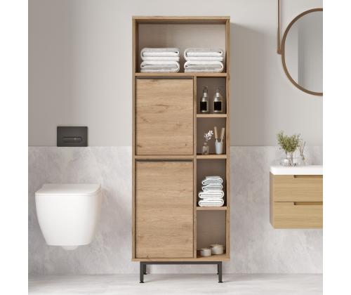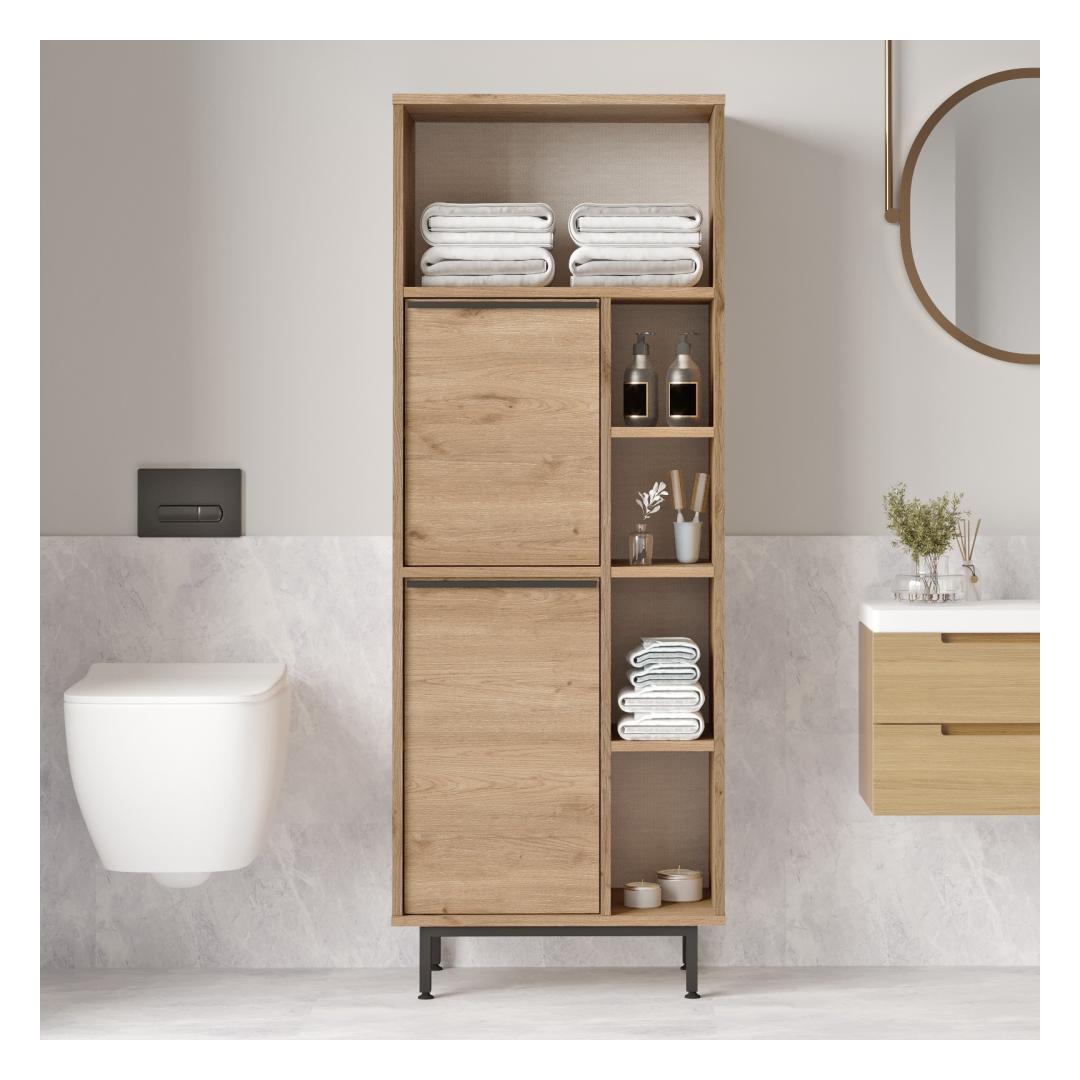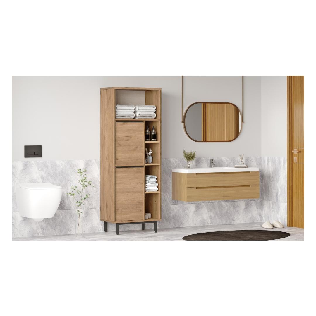 With a width of 60 cm, height of 161.6 cm, and depth of 35.5 cm, this cabinet offers plenty of storage space for all your bathroom essentials. The 18 mm thickness ensures sturdiness and longevity, while the 12 cm metal legs elevate the cabinet off the ground for easy cleaning.
