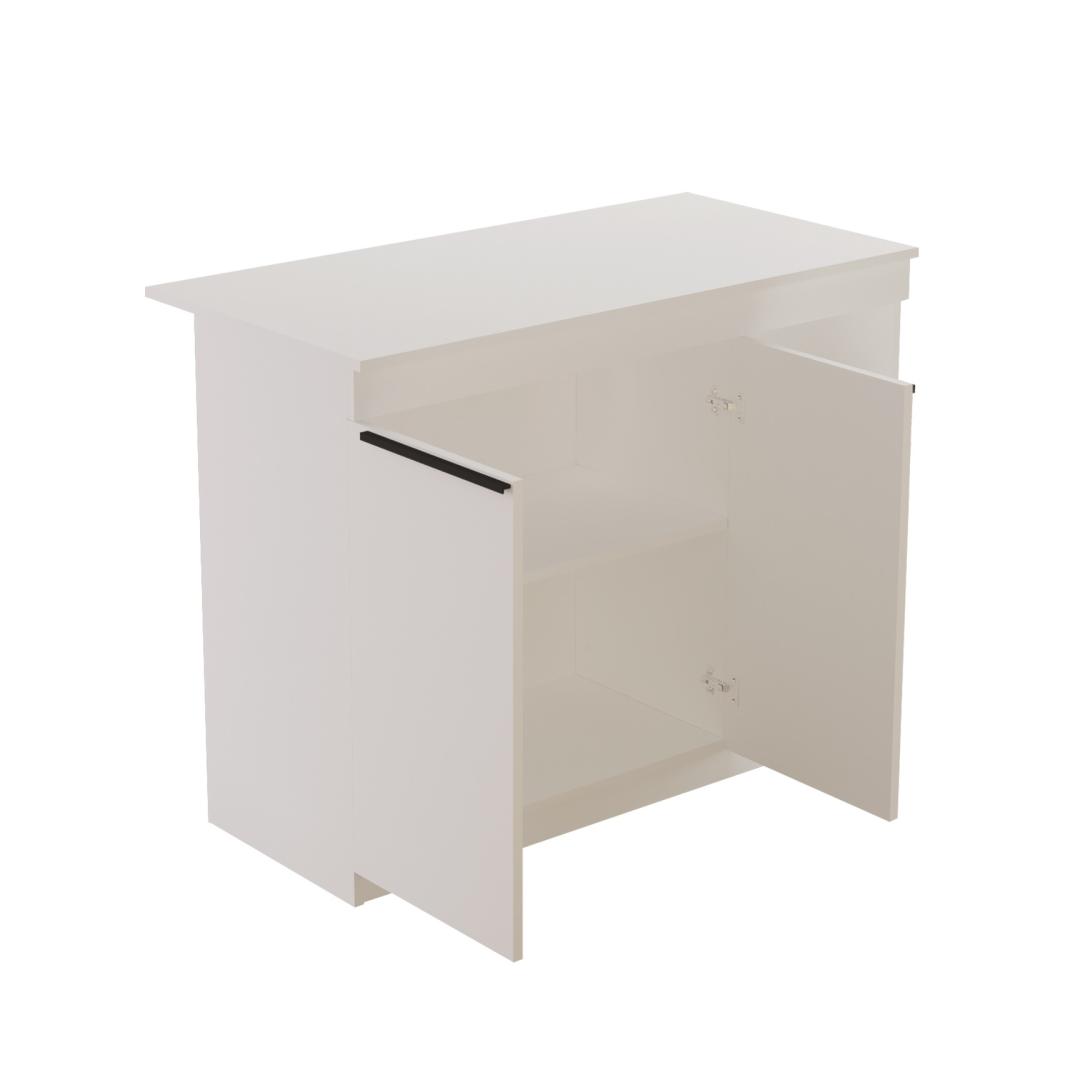 Muuda oma köök stiilseks ja funktsionaalseks ruumiks meie suurepärase köögilaua abil. See 100% melamiiniga kaetud puitlaastplaadist valmistatud laud ei ole mitte ainult vastupidav, vaid ka kergesti puhastatav, mistõttu sobib see ideaalselt igapäevaseks kasutamiseks. Elegantne valge värv lisab elegantsi igale köögi sisustusele, samas kui 18 mm paksus tagab stabiilsuse ja vastupidavuse. Tõstke oma köögi sisekujundustUuendage oma kööki selle moodsa ja šiki lauaga, mis tõstab teie sisekujundust koheselt esile. Puhtad jooned ja minimalistlik disain muudavad selle mitmekülgseks esemeks, mis võib täiendada mis tahes stiili. Funktsionaalne ja praktilineSee 120 cm laiune, 88. 2 cm kõrgune ja 60 cm sügavune laud pakub piisavalt ruumi söögitegemiseks, söögitegemiseks või isegi kodus töötamiseks. Selle tugev konstruktsioon tagab, et see peab vastu igapäevasele kulumisele, mistõttu on see praktiline valik igasse majapidamisse. Kergesti puhastatavMelamiinkate mitte ainult ei lisa lauale läikivat viimistlust, vaid võimaldab seda ka hõlpsasti niiske lapiga puhtaks pühkida. Jätke hüvasti kangekaelsete plekkide ja määrdumistega, sest see laud on loodud vastu pidama igapäevase kasutamise raskustele. Tehnilised üksikasjad:Materjal: materjal: 100% melamiiniga kaetud puitlaastplaatPaksus: 18mmLaius: 120cmKõrgus: 88. 2cmSügavus: 60cmVärv: valge Värv: White