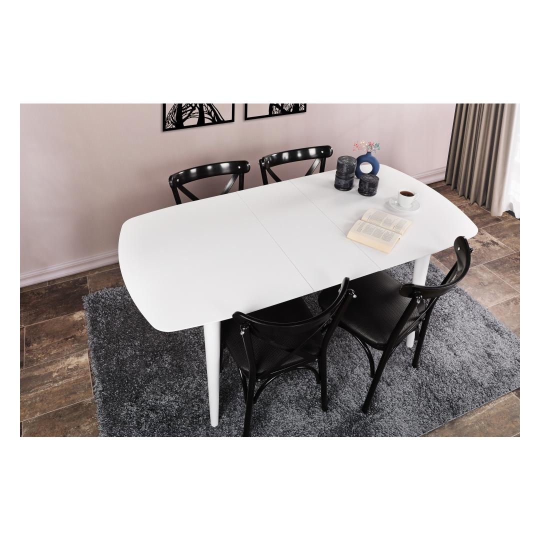Koge meie pikendatava söögilaua ajatut elegantsiNautige meie pikendatava söögilaua ilu, mis on klassikalise disaini ja kaasaegse funktsionaalsuse täiuslik segu. See ülima täpsusega valmistatud laud saab kindlasti teie söögisaali keskpunktiks, luues teie perele ja külalistele sooja ja kutsuva atmosfääri. Võrratu kvaliteet ja vastupidavusMeie 100% mdf materjalist valmistatud söögilaud tagab erakordse tugevuse ja vastupidavuse, mis tagab, et see peab vastu aja katsumusele. Tugevad plastist jalad tagavad suurepärase stabiilsuse, mis võimaldab teil nautida lugematuid meeldejäävaid söögikordi koos oma lähedastega. Võimatu pikendus lisaruumi jaoksTänu pikendatavale funktsioonile muutub see söögilaud vaevata hubasest paigast intiimsete koosviibimiste jaoks avaraks pinnaks suuremate pidude korraldamiseks. Lihtsalt lükake lauda, et avada 30 cm lisalaius, mis võimaldab rohkem külalisi majutada ja luua mitmekülgse söögikoha. Esteetiline atraktiivsus igas detailisLaua traditsiooniline kontseptsioon õhkab ajatut võlu, mis täiendab iga sisekujundust. Selle puhas valge värv lisab elegantsi ja elegantsi, sulandudes vaevata teie olemasoleva mööbliga ja parandades teie söögiruumi üldist esteetikat. Tehnilised üksikasjad:Materjal: Materjal: Materjal: Materjal: Materjal: Materjal: Materjal: Materjal: 100% MDFJalad: PlastistLaius: 130 cm (pikendatav kuni 160 cm)Kõrgus: 75 cmSügavus: 80 cmTaluvus: 41 kgVärv: valgeUuendage oma söögikogemust meie pikendatava söögilauaga ja looge koos oma lähedastega väärtuslikke mälestusi. Tellige kohe ja tooge koju see peen mööblitükk, mis ühendab endas stiili, funktsionaalsuse ja vastupidavuse. Värv: White