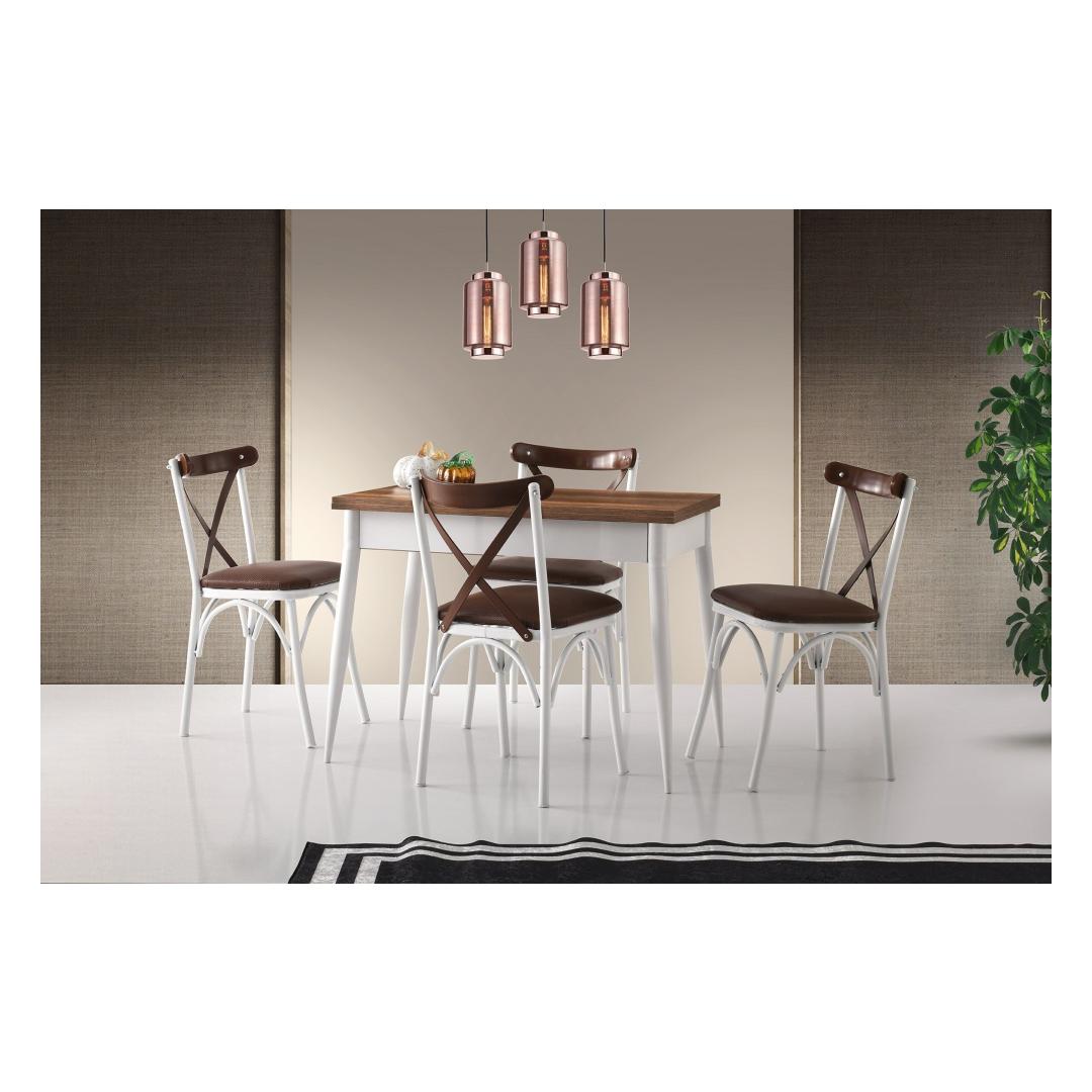 Kogege täiuslikku söögikohta meie pikendatava söögilauagaLooge koos oma lähedastega unustamatuid mälestusi meie suurepärase pikendatava söögilaua ümber. Täpse täpsusega valmistatud ja teie söögikogemuse tõstmiseks mõeldud laud on igasse kaasaegsesse koju kohustuslikuks osaks. Elegantne disain ja suurepärane kvaliteetMeie pikendatav söögilaud on elegantse ja kaasaegse disainiga, mis sobitub vaevata mis tahes sisekujundusega. Pähklipuu ja valge värvi kombinatsioon lisab teie söögikohale rafineeritust ja elegantsi, muutes selle teie kodu keskpunktiks.Võrratu vastupidavus ja stabiilsusSee 100% melamiiniga kaetud puitlaastplaadist valmistatud söögilaud on ehitatud nii, et see peab vastu. Metallist jalad tagavad erakordse stabiilsuse, tagades, et laud jääb tugevaks ka kõige elavamate koosviibimiste ajal. Tänu 27 kg kandevõimele võite julgelt paigutada oma kõige raskemad nõud ja kaunistused, ilma et peaksite muretsema kahjustuste pärast. Monitoorne ja laiendatavMeie pikendatav söögilaud pakub täiuslikku lahendust nii väikesteks kui ka suurteks koosviibimisteks. Tänu pikendatavale funktsioonile saate vaevata suurendada laiust 100 cm-lt 160 cm-le, mis võimaldab lisakülalisi majutada ja pakub piisavalt ruumi, et kõik saaksid mugavalt oma sööki nautida. Tehnilised üksikasjad:Materjal: Materjal: Materjal: Materjal: Materjal: Materjal: Materjal: Materjal: materjal: 100% melamiiniga kaetud puitlaastplaatJalad: MetallLaua suurus: Laius: 100 cm, kõrgus: 75 cm, sügavus: 60 cm.Laiendatud laua laius: 160 cmLaadimisvõime: 27 kgVärv: Pähklipuu ja valgeUuendage oma söögikogemust juba täna meie pikendatava söögilauaga. Tellige kohe ja muutke oma kodu elegantsi ja mugavuse paradiisiks. Värv: Walnut White