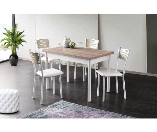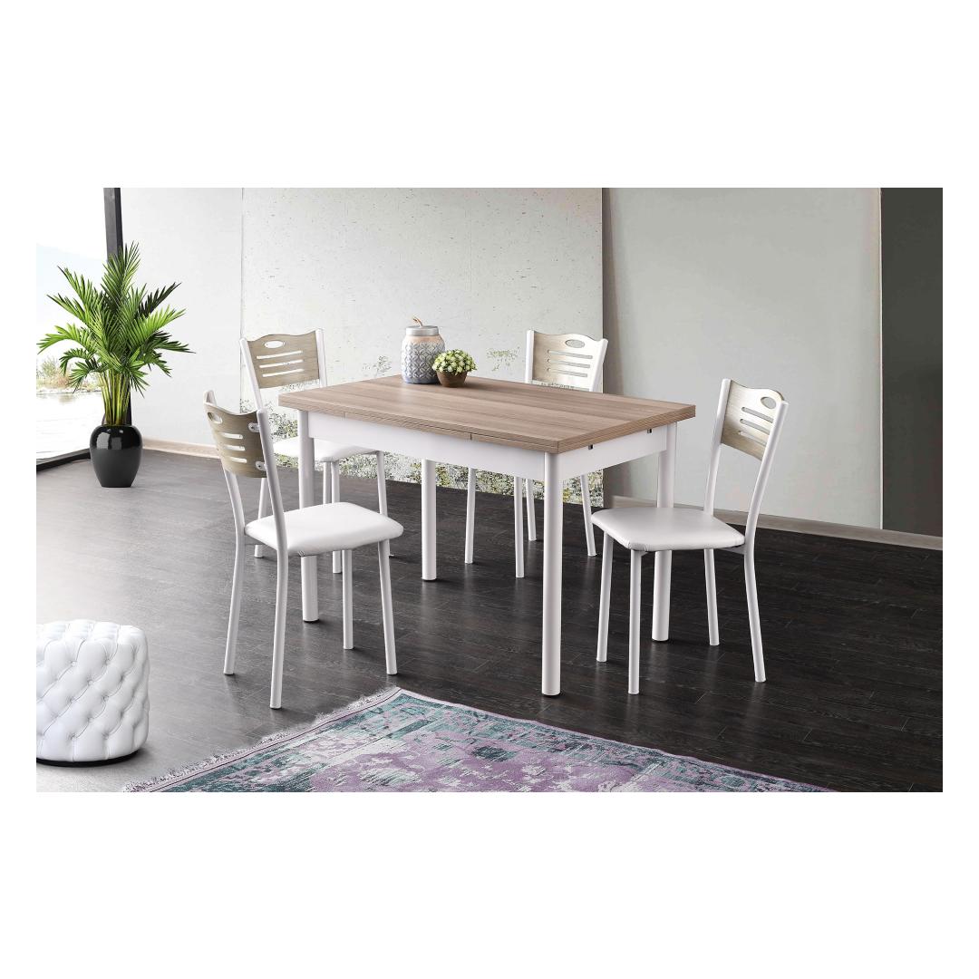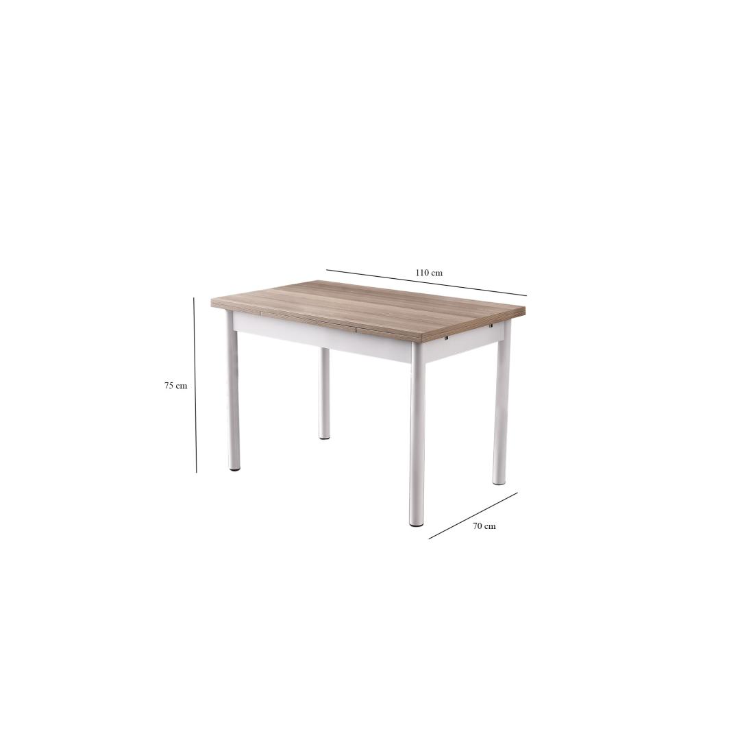 Muutke oma söögituba elegantse ja mitmekülgse pikendatava söögilauagaKas olete väsinud oma kitsast söögikohast? unistate külluslikest õhtusöökidest ja perekondlikest koosviibimistest, kuid teil pole piisavalt ruumi, et kõiki ära mahutada? ei vaata kaugemale kui meie peen pikendatav söögilaud, mis on mõeldud teie söögikogemuse revolutsiooniliseks muutmiseks.Vabastage lihtsuse iluSee ülima täpsusega valmistatud söögilaud on elegantse ja kaasaegse disainiga, mis sobitub vaevata mis tahes sisustusstiiliga. Tamme ja valge värvi kombinatsioon lisab elegantsi, luues teie söögituppa visuaalselt uimastava keskse elemendi. Laiendage oma võimalusiTänu oma geniaalsele pikendatavale funktsioonile pakub see laud teile paindlikkust, et kohaneda mis tahes sündmusega. Olenemata sellest, kas korraldate intiimse õhtusöögi kahele või suure pidu kogu perele, pikendage laud lihtsalt 170 cm laiuseks ja vaadake, kuidas see vaevata kõiki mahutab. Konstrueeritud kestmaSee 100% melamiiniga kaetud puitlaastplaadist valmistatud söögilaud ei ole mitte ainult visuaalselt atraktiivne, vaid ka ehitatud nii, et see peab vastu. Metallist jalad pakuvad tugevat tuge, tagades stabiilsuse ja vastupidavuse aastateks. Tehnilised üksikasjad:Materjal: materjal: 100% melamiiniga kaetud puitlaastplaatJalad: MetallLaua suurus: Laius: 110 cm, kõrgus: 75 cm, sügavus: 70 cm.Laiendatud laua laius: 170 cmLaadimisvõime: 27 kgVärv: Tamm ja valgeÄrge jätke kasutamata võimalust muuta oma söögituba elegantsi ja funktsionaalsuse paradiisiks. Tellige meie pikendatav söögilaud juba täna ja kogege rõõmu unustamatute koosviibimiste korraldamisest oma lähedastega. Värv: Oak White