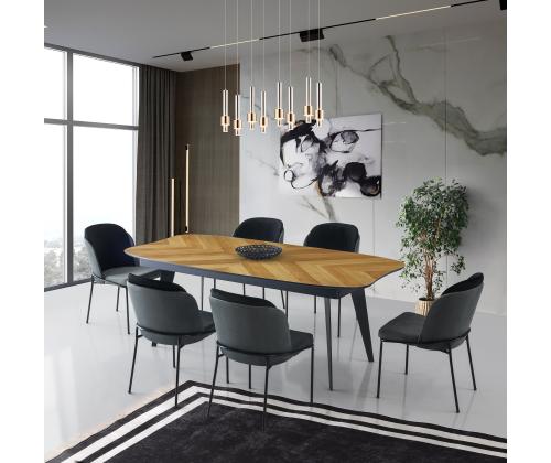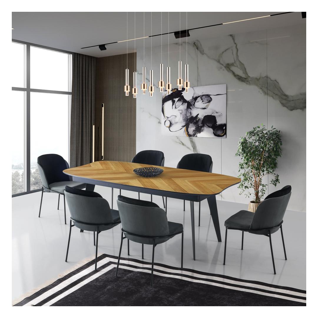 Muuda oma söögikogemus meie uimastava söögilauaga. See laud on valmistatud ülima täpsuse ja tähelepanelikkusega, see laud õhkab elegantsi ja elegantsust. Selle elegantne disain ja peen viimistlus muudavad selle täiuslikuks täienduseks igasse moodsasse või kaasaegsesse ruumi. Võrratu vastupidavus ja tugevusValmistatud 100% mdf värvitud/furnitud materjalist, see söögilaud on ehitatud kestma. Tugevad metalljalad tagavad võrratu stabiilsuse ja toe, tagades, et see peab vastu aja katsumusele. Tänu 50 kg kandevõimele mahutab see vaevata teie söögitoa vajadusi.Esteetiline atraktiivsusTamme ja musta värvi kombinatsioon lisab sellele söögilauale võlu ja mitmekülgsust. Kontrastsed toonid loovad visuaalselt ahvatleva välimuse, mis täiendab vaevata iga sisekujundust. Olenemata sellest, kas teil on minimalistlik või eklektiline stiil, see laud sulandub sujuvalt ja parandab teie söögisaali üldist atmosfääri. Täiuslik suurus kogunemiste jaoksSee söögilaud laiusega 206+45+45 cm, kõrgusega 77 cm ja sügavusega 102 cm pakub piisavalt ruumi, et teie pere ja sõbrad saaksid selle ümber koguneda ja ühiselt toitu nautida. Ükskõik, kas tegemist on hubase õhtusöögiga kahele või elava õhtusöögi peoga, see laud pakub ideaalset keskkonda unustamatuteks hetkedeks ja väärtuslikeks vestlusteks. Tehnilised üksikasjad:Toote tüüp: Tellimuse laud, mis on valmistatud ja paigaldatud, kuid ei sisalda muid seadmeid: Laua tüüp: söögilaudMaterjal: Materjal: Materjal: Materjal: Materjal: Materjal: Materjal: Materjal: Materjal: 100% MDF, värvitud/furnüüritudJalad: MetallLaius: 206+45+45 cmKõrgus: 77 cmSügavus: 102 cmLaadimisvõime: 50 kgVärv: Tamm ja mustVärskendage oma söögisaali meie erakordse söögilauaga juba täna ja looge mälestusi, mis kestavad terve elu. Tellige kohe ja kogege stiili, vastupidavuse ja funktsionaalsuse täiuslikku segu. Värv: Oak Black