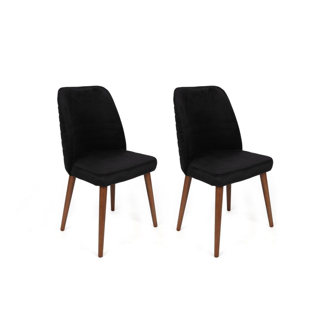 With its sleek and streamlined silhouette, this chair set effortlessly complements any decor style. The hornbeam wood legs not only enhance the overall aesthetic appeal but also provide stability and sturdiness. The contrasting Black and Walnut colors of the chairs create a visually striking look that is sure to impress your guests.