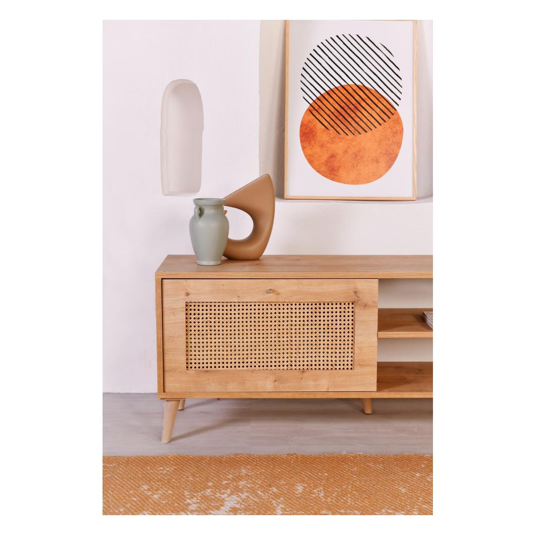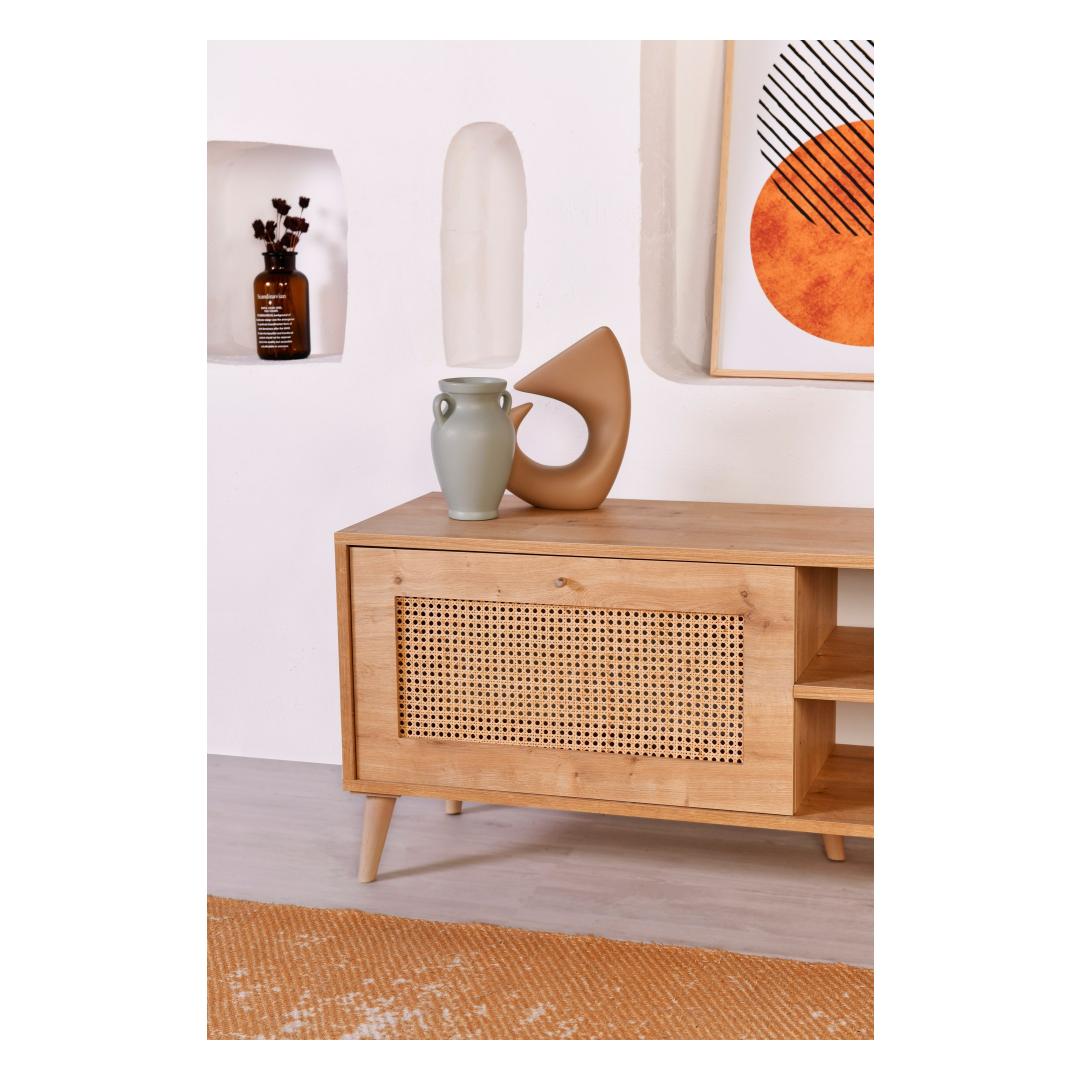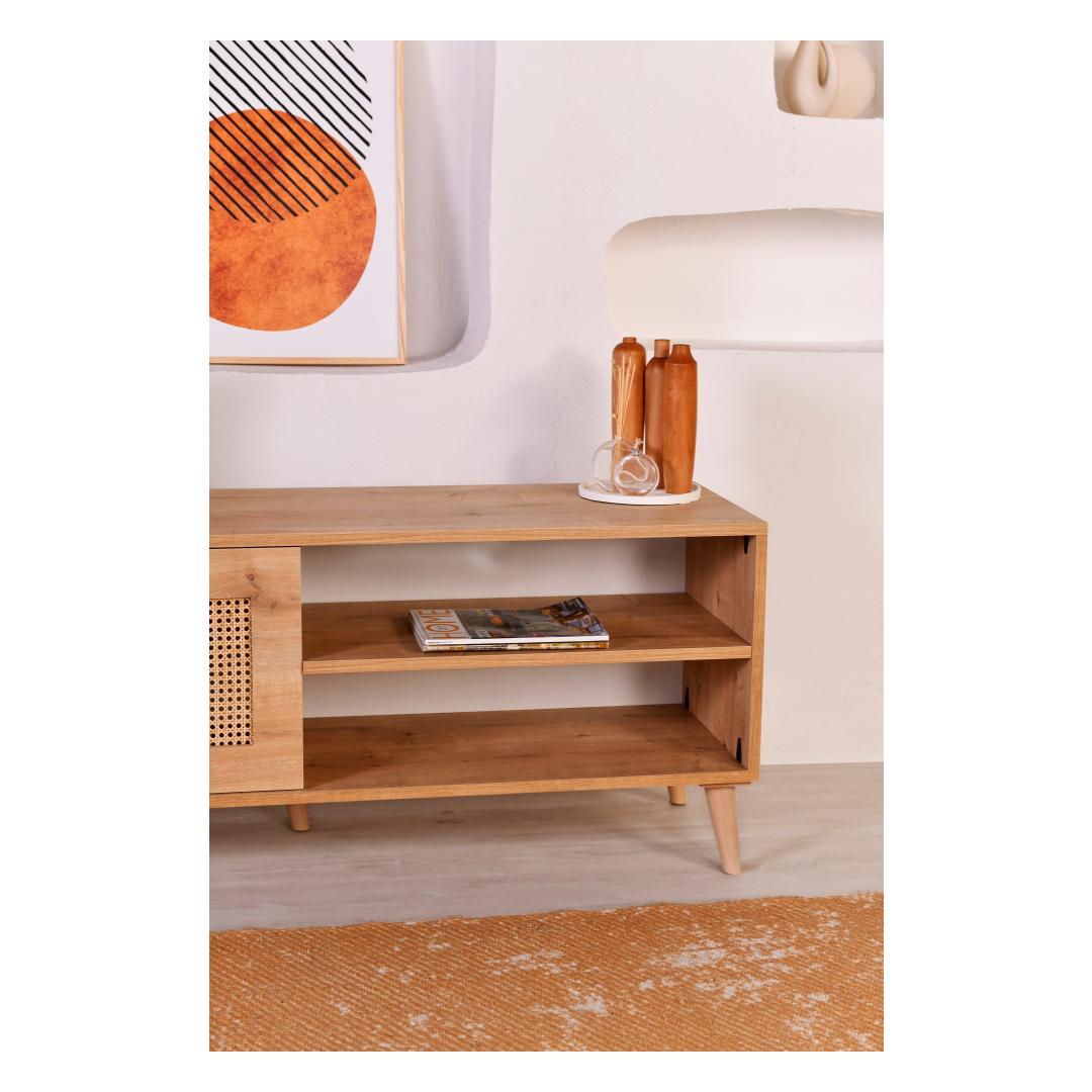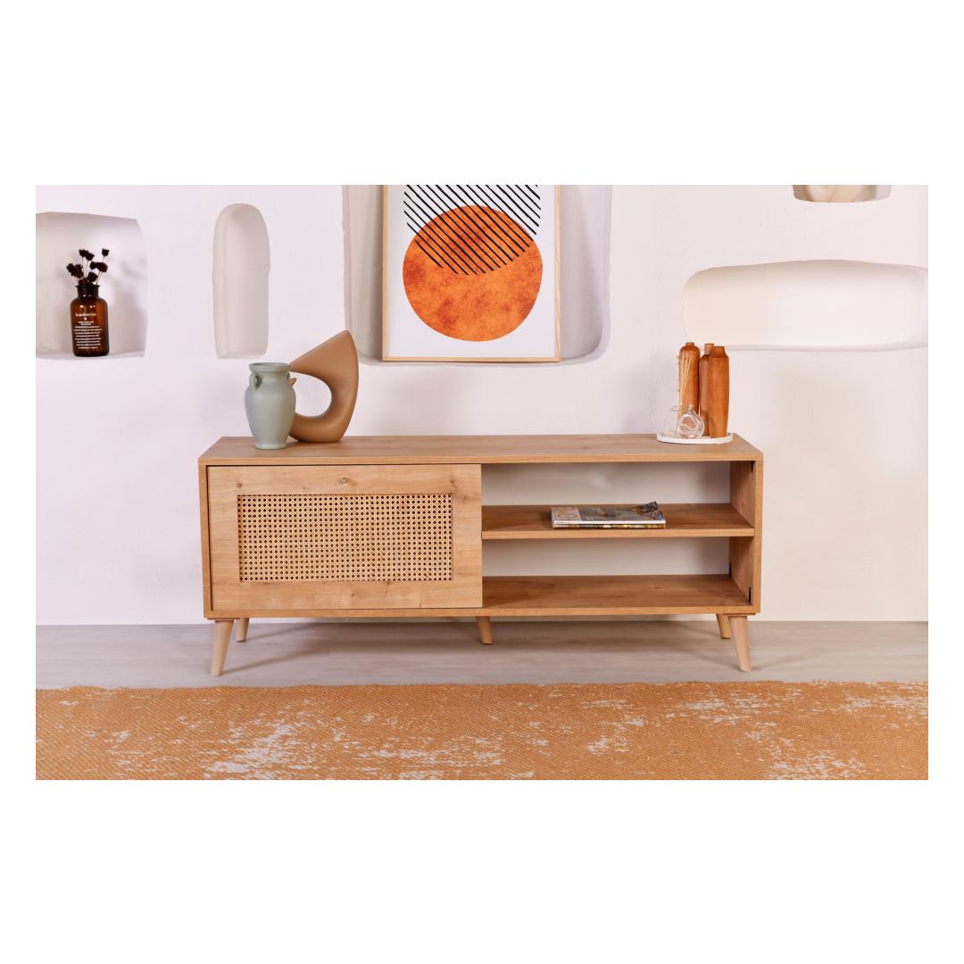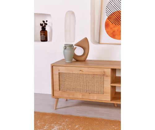 Välistage oma eluruumi stiilse ja funktsionaalse teleripuldigaMuuda oma elutuba hubaseks ja kutsuvaks ruumiks meie peen teleripuldi abil. See ülima täpsusega valmistatud teleripult on loodud lisama teie kodu sisustusele elegantsust, pakkudes samal ajal praktilisi hoiulahendusi teie meelelahutusvahendite jaoks. Võrratu vastupidavus ja kvaliteetValmistatud 100% melamiiniga kaetud puitlaastplaadist, tagab meie telerialus erakordse vastupidavuse ja pikaealisuse. Melamiinkate mitte ainult ei suurenda selle vastupidavust kriimustuste ja plekkide suhtes, vaid lisab ka üldisele disainile elegantse ja lihvitud viimistluse. Selle teleritooliga saate nautida selle ilu aastaid. Sleek disain metalljalgadegaSee teleripult on elegantsete metalljalgadega, mis annab modernse ja kaasaegse võlu, mis sobib vaevata iga sisustusega. Metallist jalad ei paku mitte ainult suurepärast stabiilsust, vaid lisavad üldisele esteetikale ka rafineeritust. Tõstke oma elutuba selle stiilse mööbliesemega esile. Rikkalik panipaikSee teleripult pakub oma suurepäraste mõõtmetega piisavalt hoiuruumi, et hoida oma meediaseadmeid, dvd-d ja muid tarvikuid organiseeritult ja käeulatuses. Avar pealispind mahutab suuri lameekraaniga telereid, samas kui avatud riiulid ja kapid pakuvad mugavaid hoiustamisvõimalusi teie meediakollektsiooni jaoks. Tehnilised üksikasjad:Materjal: materjal: 100% melamiiniga kaetud puitlaastplaatMetallist jalad lisavad stabiilsustJalgade kõrgus: 15 cmLaius: 138 cmKõrgus: 55 cmSügavus: 41 cmVärv: TammUuendage oma elutuba meie teleripuldiga ja kogege täiuslikku segu stiilist, funktsionaalsusest ja vastupidavusest. Tellige kohe ja viige oma kodu sisustus uutesse kõrgustesse! Värv: Oak