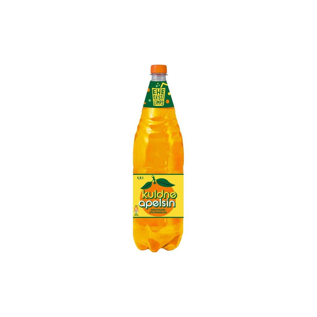 Vesi; suhkur; apelsinimahl kontsentreeritud mahlast (1%); süsihappegaas; happesuse regulaator – sidrunhape; antioksüdant – askorbiinhape; lõhna- ja maitseained; stabilisaatorid – E445, E444; toiduvärvid – E160e, E160a; säilitusained – kaaliumsorbaat, naatriumbensoaat. Kuldne Apelsin on ehtsa apelsinimahlaga karastusjook.