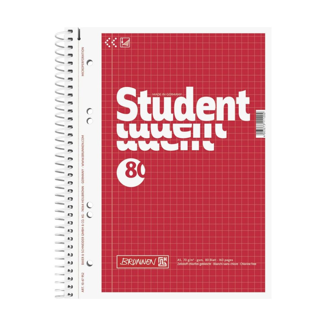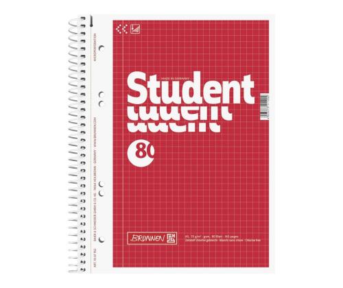 Kaustik spiraalköites A5 ruuduline BRUNNEN Student perf.-ga kartongkaaned 80 lehte