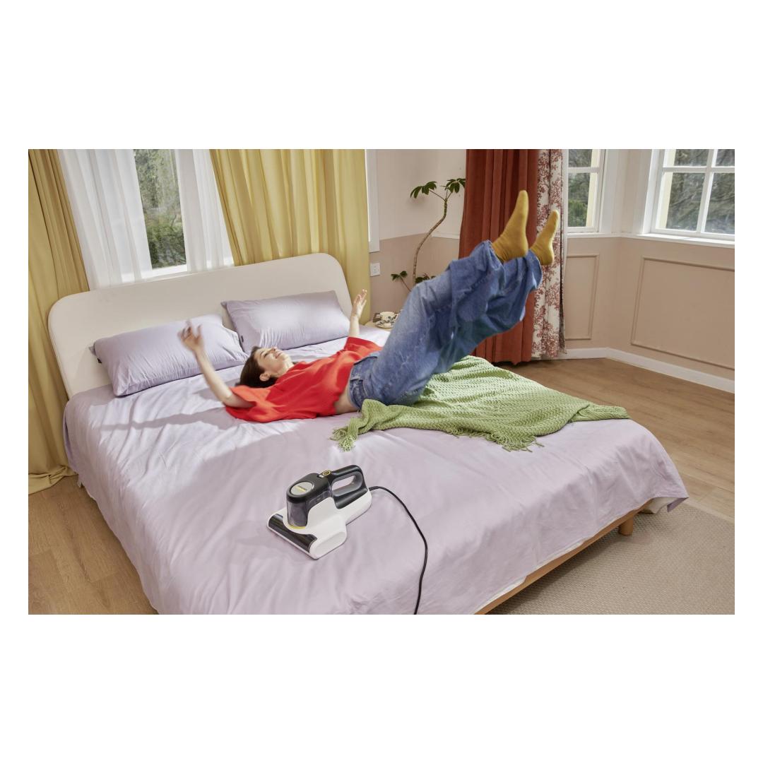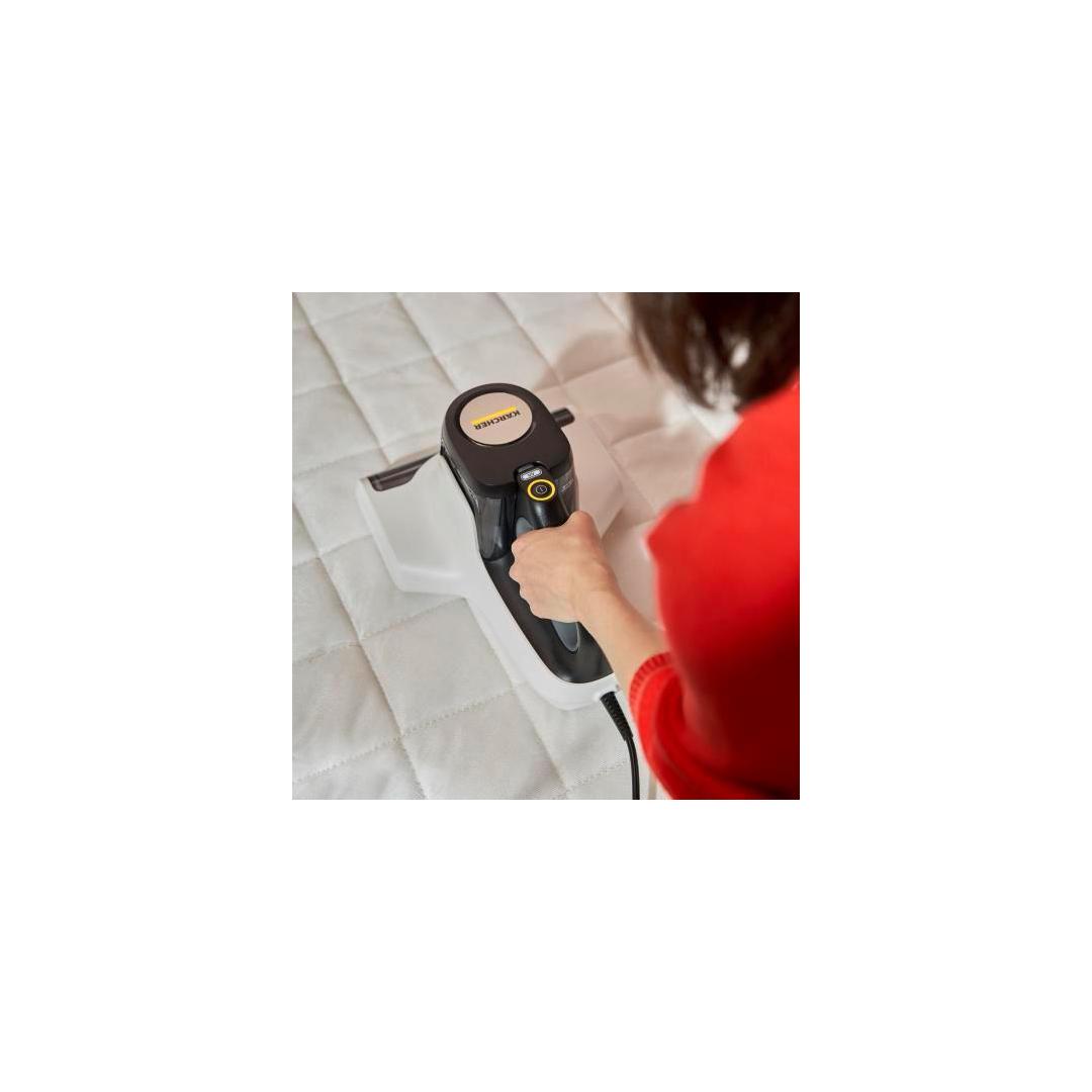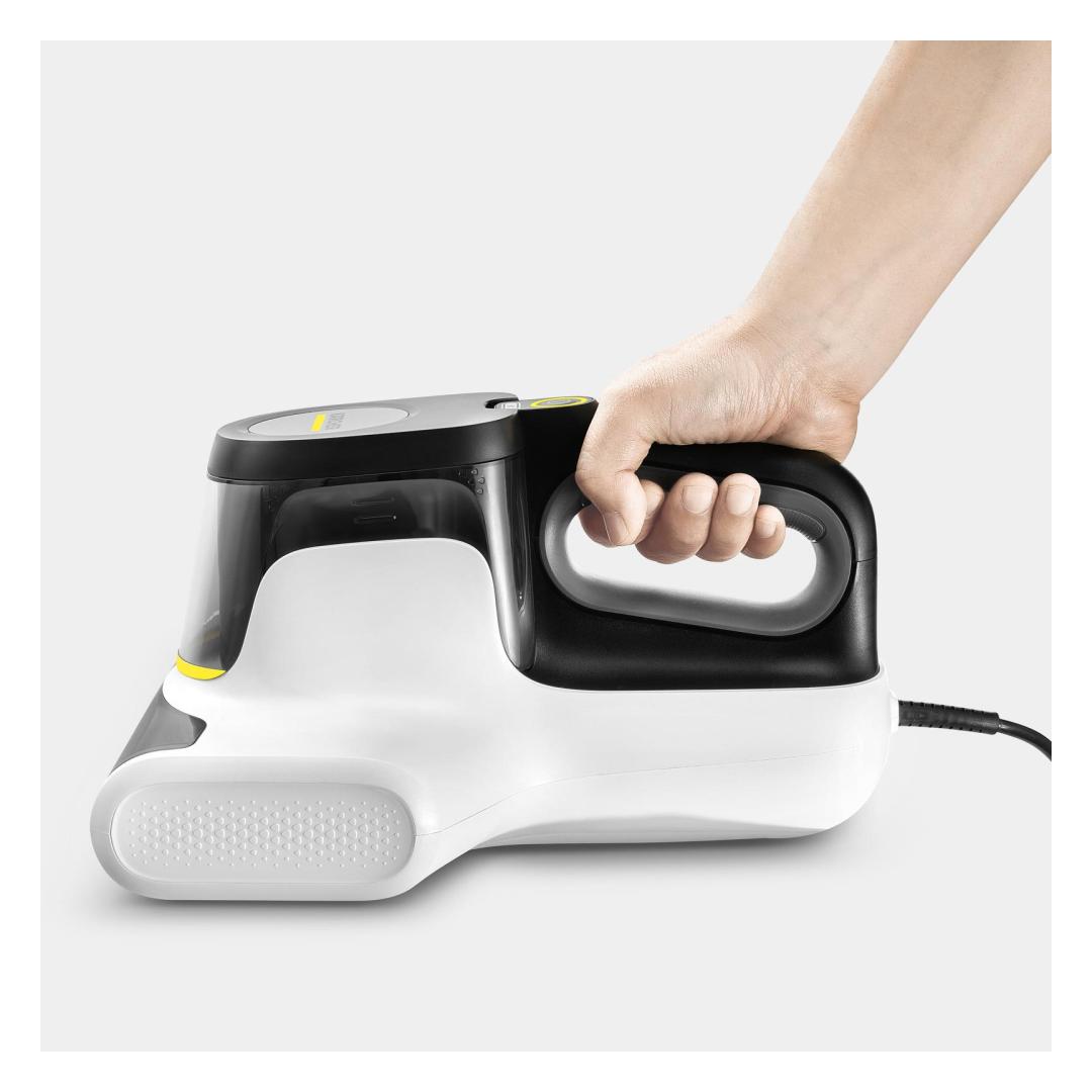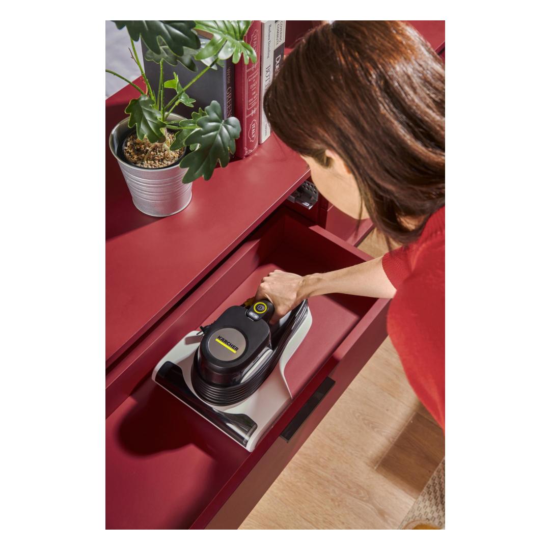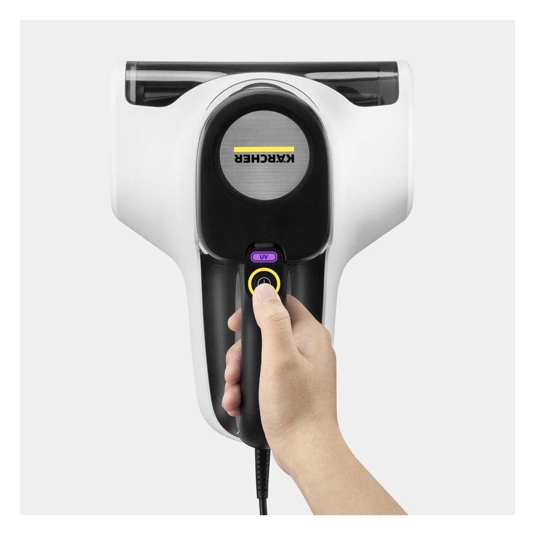 Kärcher VCH 4 UVCLEAN. Cleaning type: Dry, Vacuum air filtering: Foam, Cleaning surfaces: Upholstery, Mattress. Dust container type: Bagless, Product colour: Black, White, Dirt capacity dry: 0.4 L. Cord length: 5 m. Power source: AC, Maximum input power: 500 W, AC input voltage: 220 - 240 V. Width: 240 mm, Depth: 309 mm, Height: 170 mm