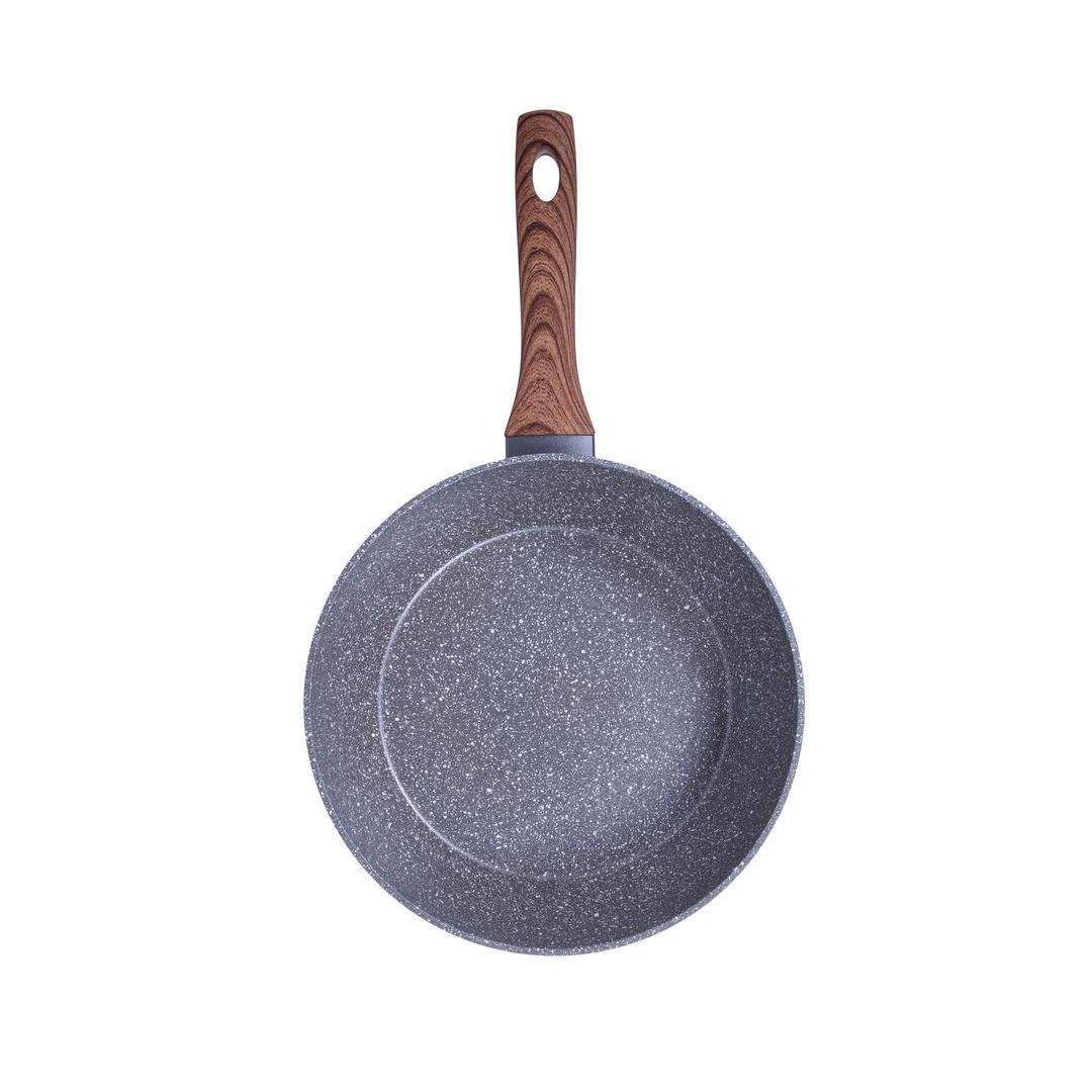 AQUILA 93054 Frying pan ⌀28, h=7.5cm Internal non-stick granite coating Ergonomic wooden soft-touch handle with hanging loop The bottom of the frying pan is reinforced with an anti-deformation disk Induction (suitable for all types of stoves) AQUILA