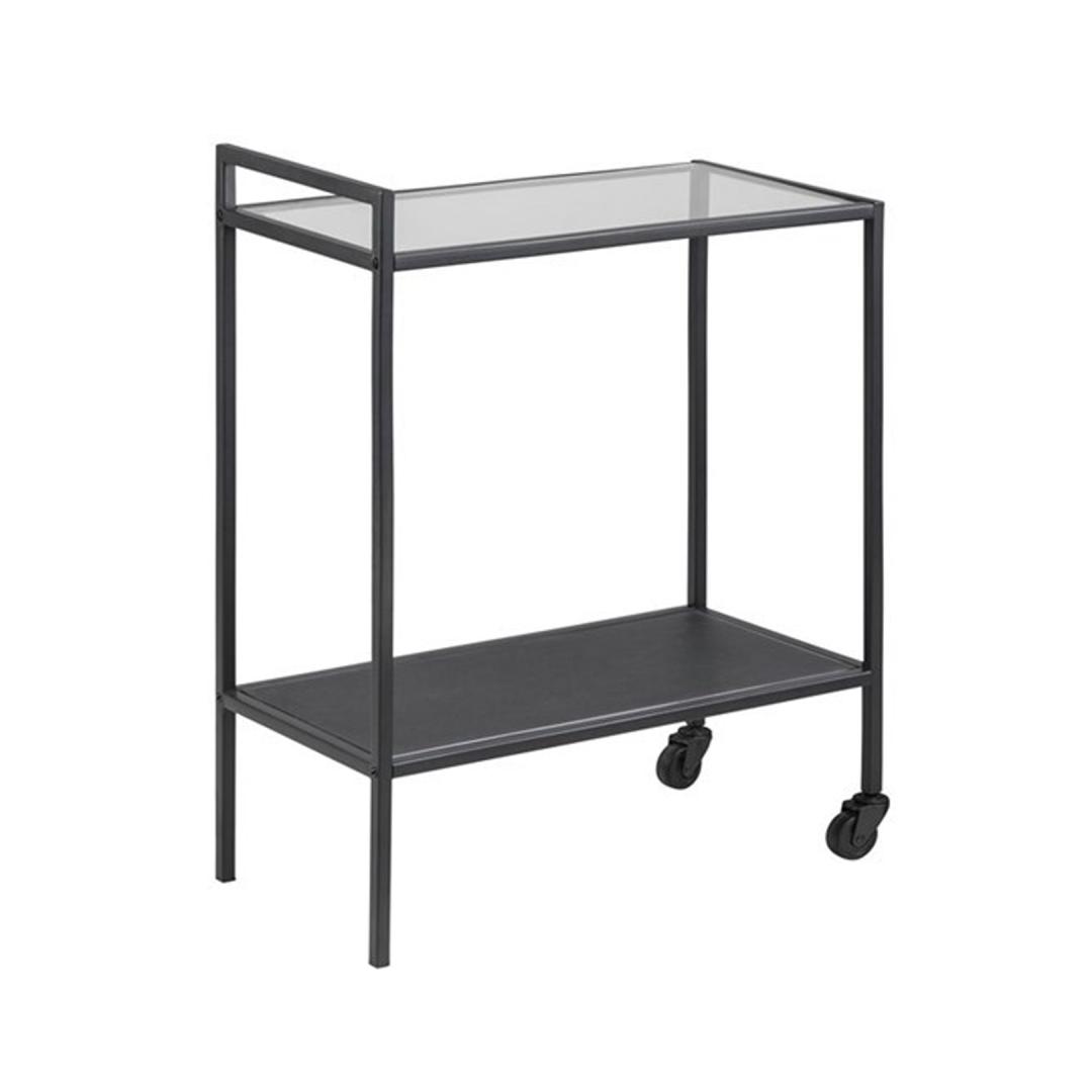 Serving table SEAFORD 60x30xH75cm, shelves: transparent/matt black 5mm glass, frame: black metal. Serveerimislaud SEAFORD 60x30xH75cm, riiulid: läbipaistev/matt must 5mm klaas, raam: must metall.