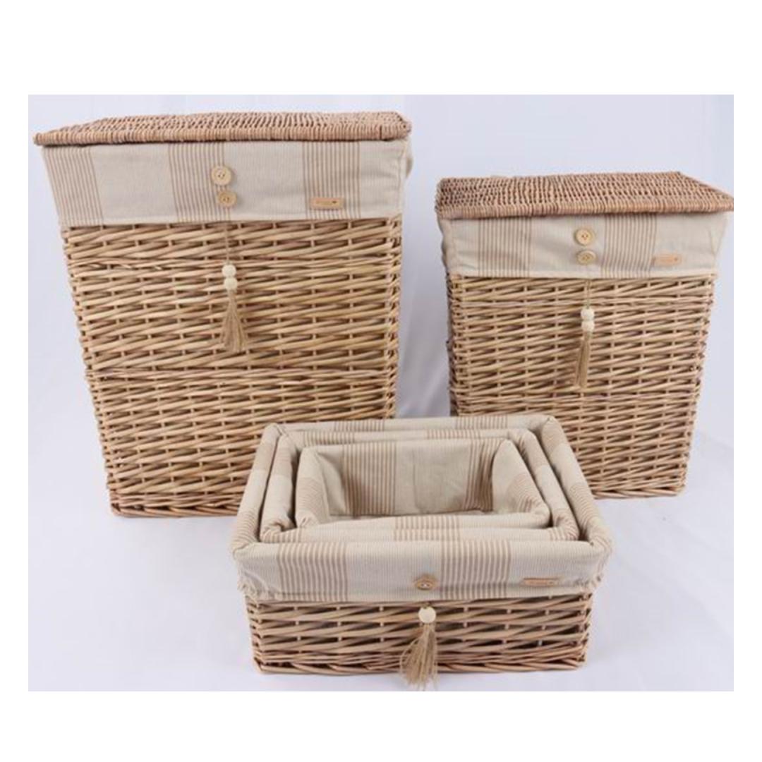 Tekstiilvooder: puuvillane triibuline kangas. Korvi materjal: käsitsi punutud naturaalne pajuvits.