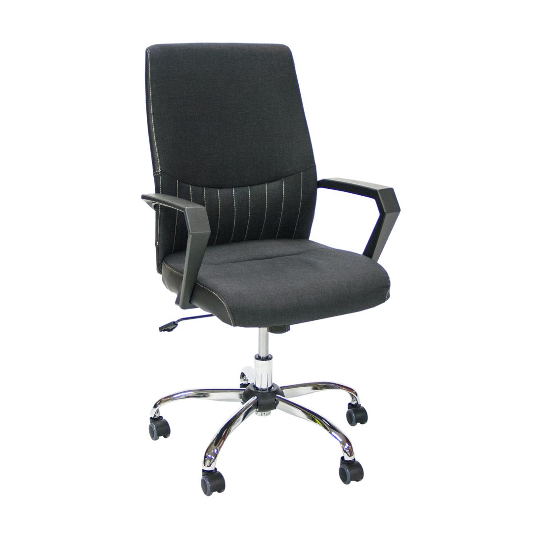 Task chair ANGELO black. The upholstered seat and backrest of the chair are covered with black polyester fabric. The armrests are made of plastic. The chair has a swing mechanism and pneumatic seat height adjustment. The chair has a 5-pronged chromed steel base and floor-saving castors. The overall dimensions of the chair are 58x59xH97-105cm. Seat height 43-51cm, seat width 49cm, seat depth 48,5cm, backrest height 56cm. Weight limit 120kg. Töötool ANGELO must. Tooli polsterdatud iste ja seljatugi on kaetud musta polüesterkangaga. Käetoed on valmistatud plastikust. Toolil on kiikemehhanism. Istme kõrgus on reguleeritav gaasamordi abil. Toolil on 5-haruline kroomitud terasest jalarist ja põrandat säästvad rattad. Tooli üldmõõdud on 58x59xH97-105cm. Istme kõrgus 43-51cm, istme laius 49cm, istme sügavus 48,5cm, seljatoe kõrgus 56cm. Kaalupiirang 120kg.