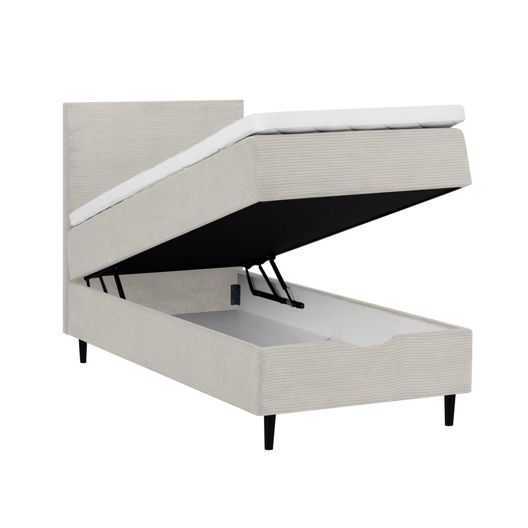 The top mattress is made of foam and its thickness is 7cm. Under it is a mattress with pocket suspension. 210 springs/m2, spring height 13cm. The bed frame is made of wood, chipboard and hardboard. There is spacious storage space under the bed. Bed legs are made of wood, 14cm high. The headboard is as wide as the bed, its thickness is 7cm, height 105cm. Connecting elements have been added. The height of the bed is 70cm. The dimensions of the product are 91x208xH119cm. Voodi kattemadrats on poroloonist ja selle paksus on 7cm. Kattemadratsi all asub pocket-vedrustusega madrats. 210vedru/m2, vedru kõrgus 13cm. Voodi raam on valmistatud puidust, puitlaast- ja puitkiudplaadist. Voodi all asub ruumikas panipaik. Voodijalad on valmistatud puidust, 14cm kõrged. Voodipeats on voodiga sama lai, selle paksus on 7cm, kõrgus 105cm. Ühenduselemendid on lisatud. Voodi kõrgus maast on 70cm. Toote mõõdud on 91x208xH119cm.