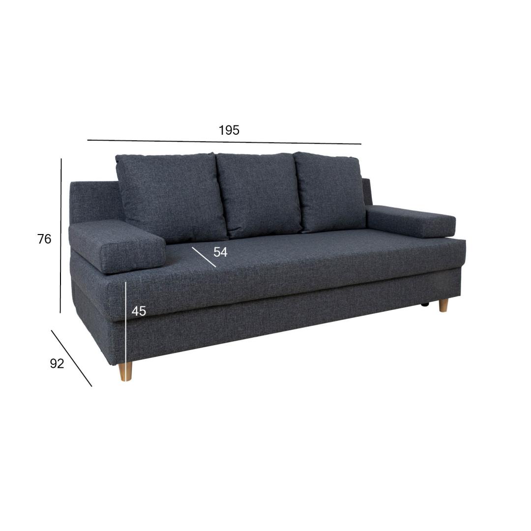 Sofa bed VELLA pesukastiga 195x92xH76cm, tumehall