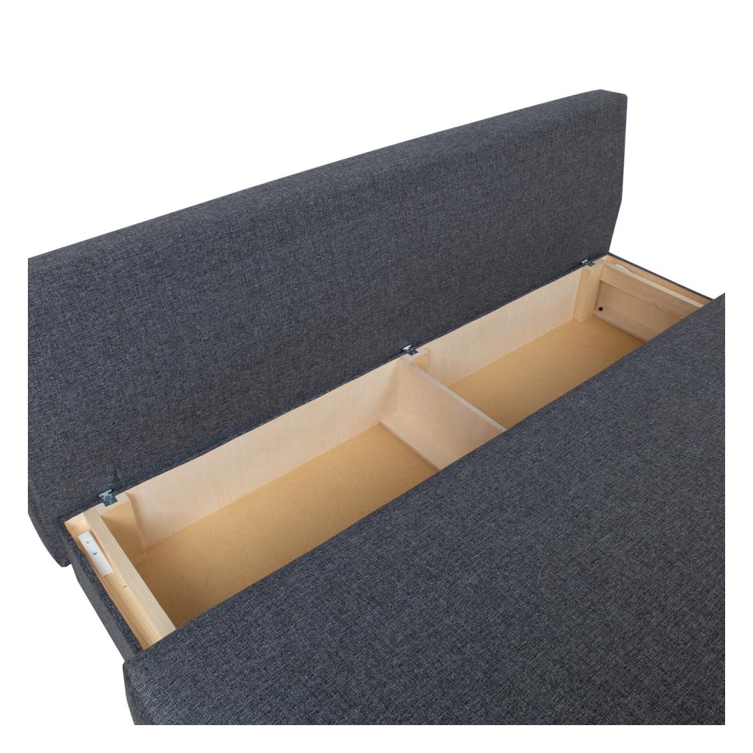 Diivan on toodetud Eestis. Diivanvoodi VELLA pesukastiga, tumehall.