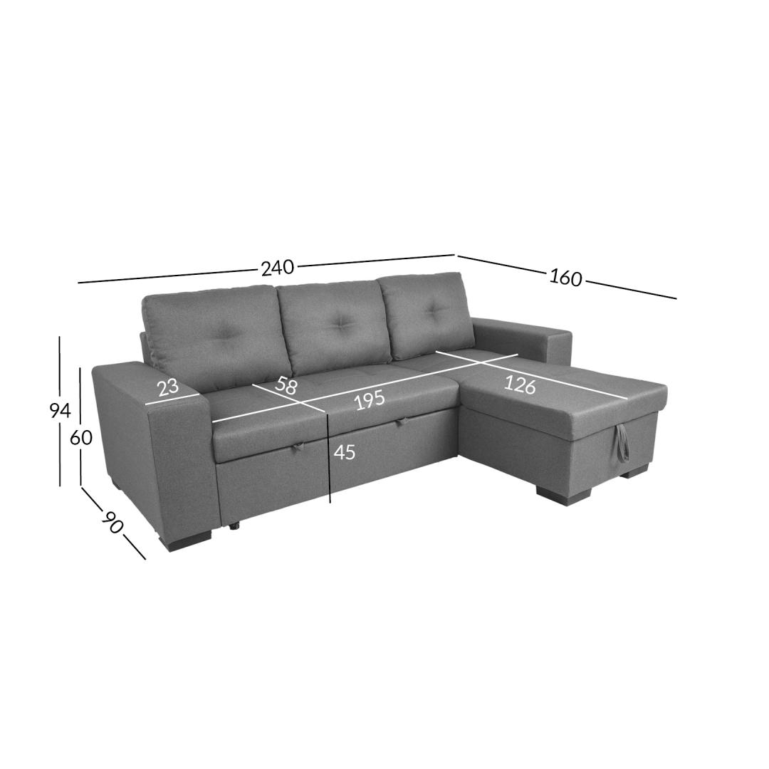 Overall dimensions of the sofa: 240 x 90/160 x H94 cm.
