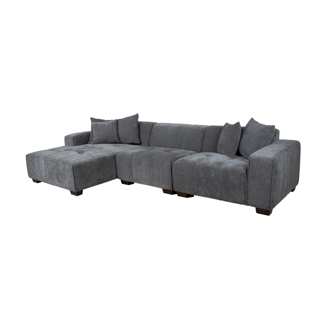 Komplekti kuulub 3+2 diivanipatja mõõtudega 55x55cm ja 42x42cm. Nurgadiivan DAHLIA vasak nurk, hall.