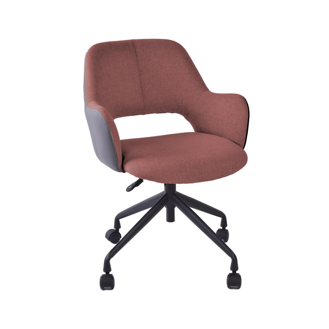 Task chair KENO with castors 57x62xH82-88, dark pink/grey. The seat and back of the chair are lightly padded and covered with dark pink velvet polyester fabric. The outside of the backrest is covered with grey synthetic leather. The height of the chair seat is adjustable by gas lift. The chair's four-pronged metal leg with plastic castors is finished with a black powder coating. Töötool KENO ratastega 57x62xH82-88cm, tumeroosa/hall. Tooli iste ja seljatugi on kergelt polsterdatud ja kaetud tumeroosa sametise polüesterkangaga. Seljatoe väliskülg on kaetud halli kunstnahaga. Tooli istme kõrgus on reguleeritav gaasamordi abil. Tooli neljaharuline plastikratastega metallist jalg on viimistletud musta pulbervärviga.
