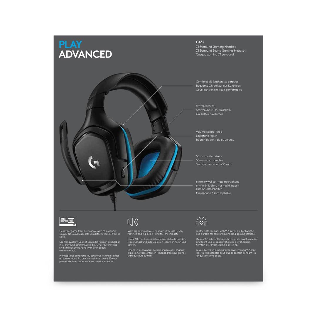 HEADSET GAMING G432/BLACK 981-000770 LOGITECH