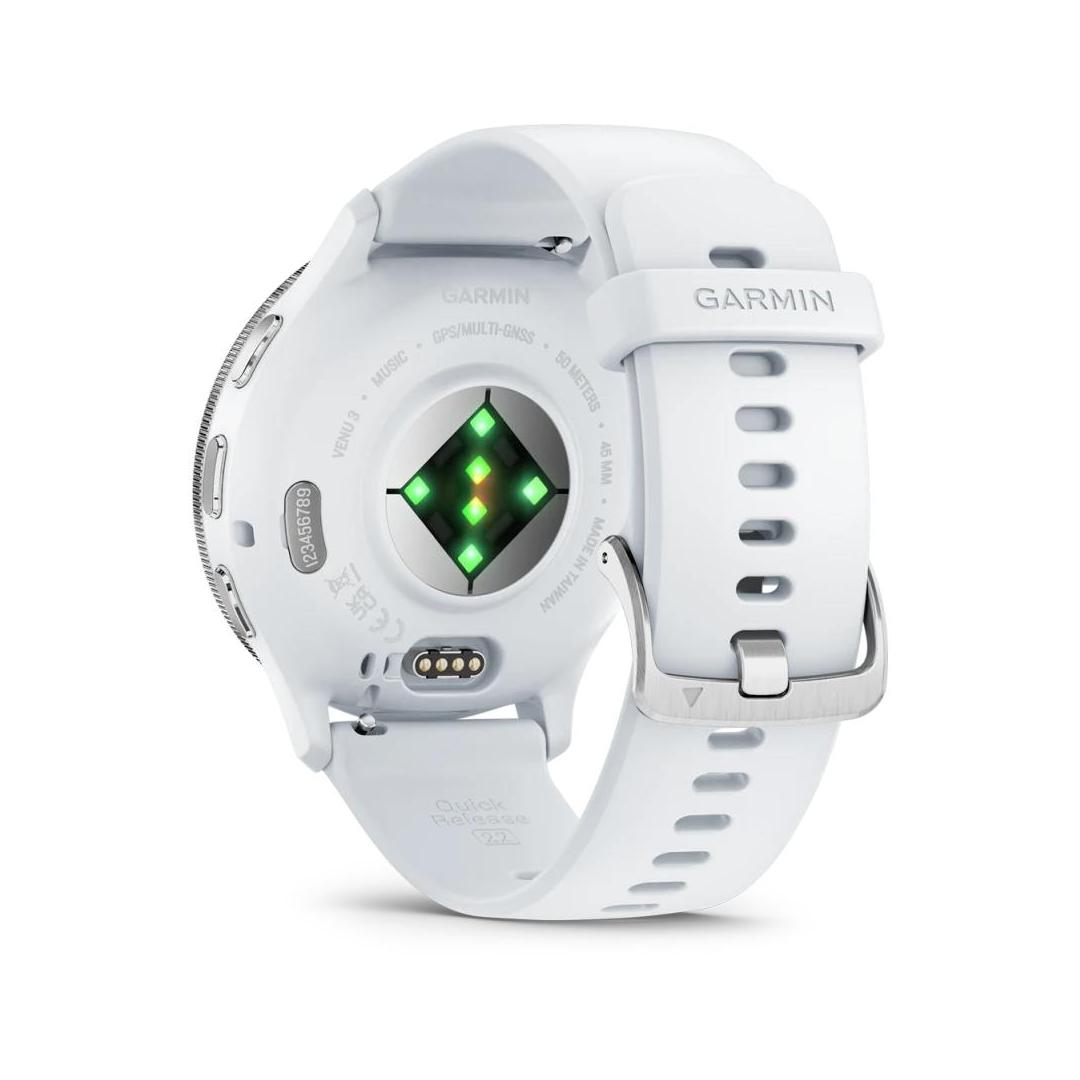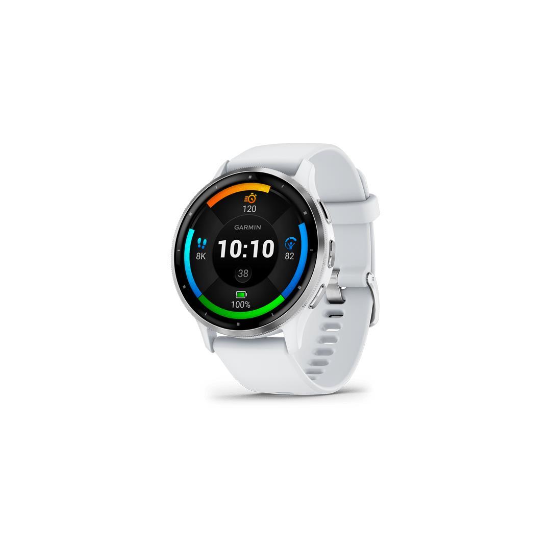 Venu 3|Screen 1.4"|Display technology AMOLED|Resolution 454 x 454|Wireless connections WLAN/Bluetooth|Memory 8 GB|GPS|Colour White / Silver|Weight 0.046 kg