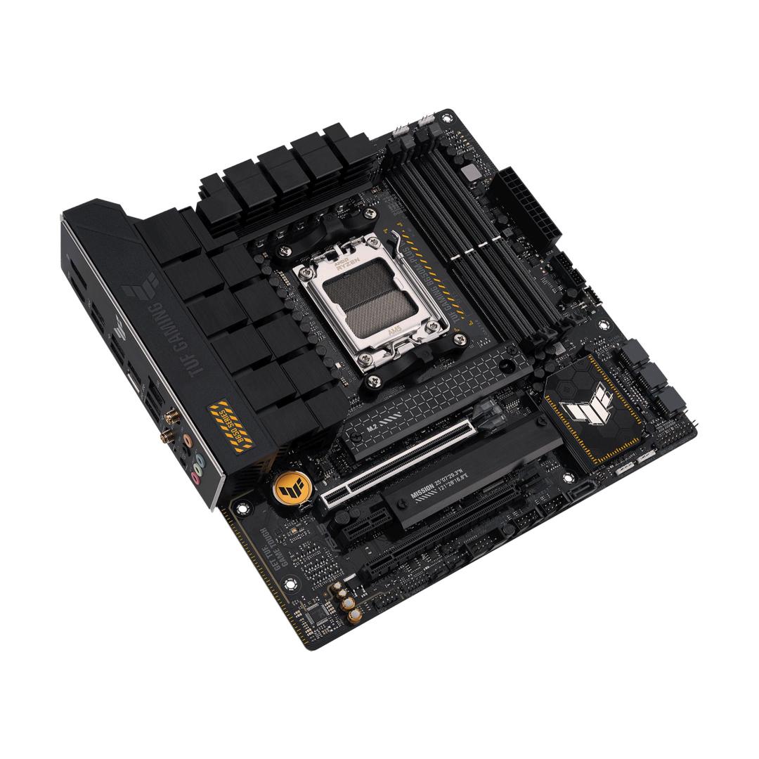 ASUS TUF GAMING B650M-PLUS WIFI takes all the essential elements of the latest AMD Ryzen 7000-series processors and combines them with game-ready features and proven durability. Engineered with military-grade components, an upgraded power solution and a comprehensive cooling system, this motherboard goes beyond expectations with rock-solid and stable performance for marathon gaming. TUF GAMING motherboards also undergo rigorous endurance testing to ensure that they can handle conditions where others may fail. Aesthetically, this model incorporates rugged off-black and geometric design elements to reflect the dependability and stability that defines the TUF GAMING series.