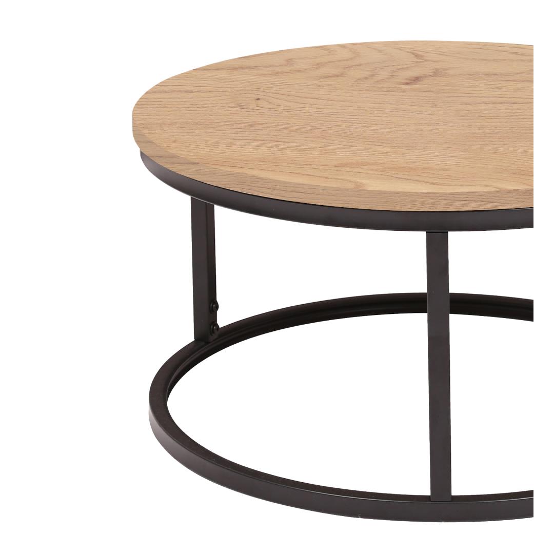 Coffee table BRITE D60xH32cm, light wood. The tabletop has a light wood decor and is made of 18mm thick MDF board. The frame and legs of the table are made of metal and coated with black powder paint. The dimensions of the table are D60xH32cm. Diivanilaud BRITE D60xH32cm, hele puit.
