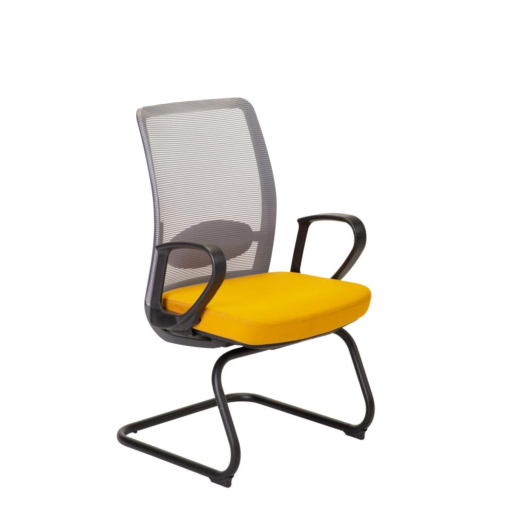 Customer chair ANGGUN, yellow/grey. The seat is covered in polyester fabric, 50,000 Martindale. The backrest is covered with polyester mesh fabric. Adjustable lumbar support. Black plastic armrests. The base frame of the chair is made of black metal. The overall dimensions of the chair are 60x57xH99cm. Weight limit 100 kg.