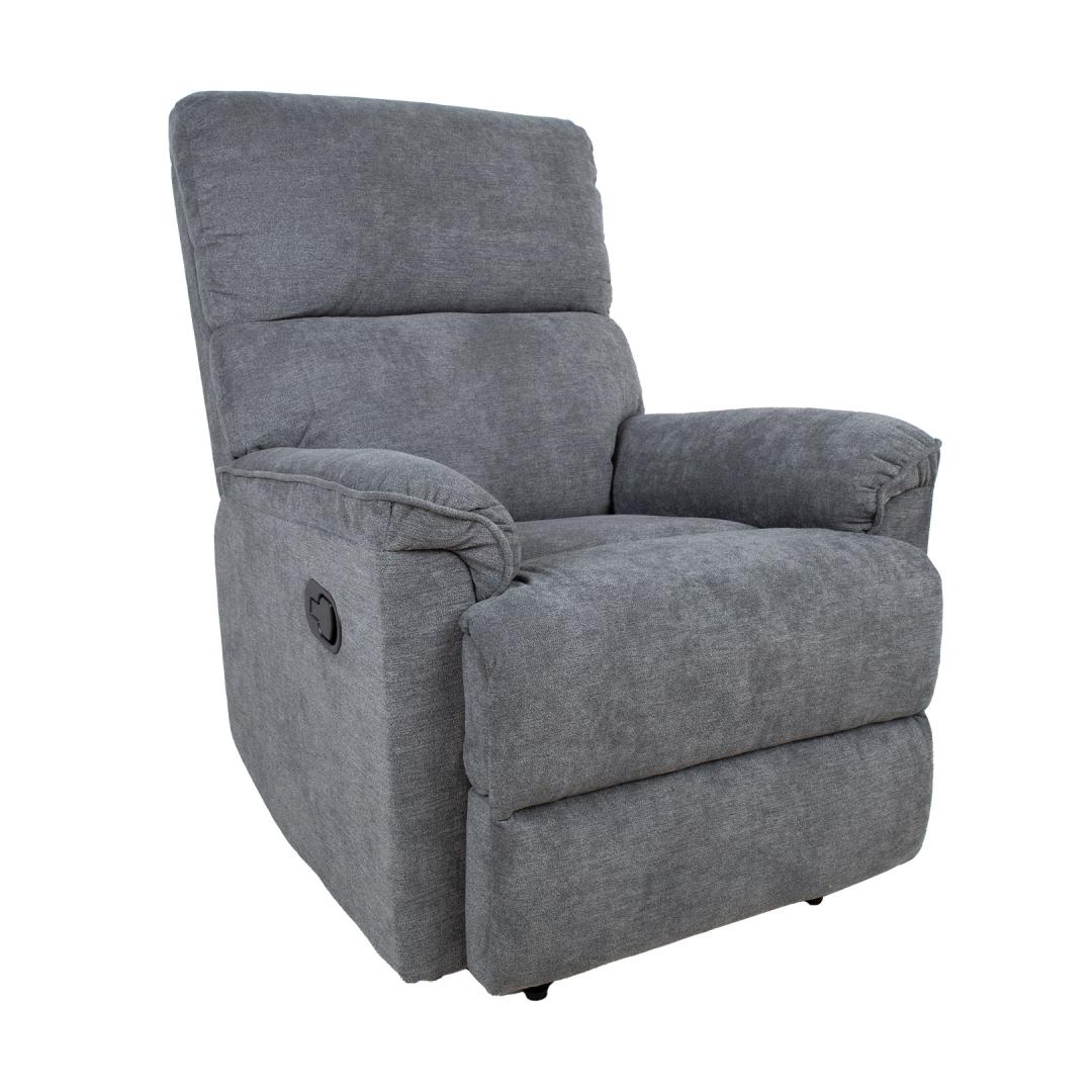 Armchair GUSTAV manual recliner 80x92xH104cm, gray. It is possible to change the position of the footrest of the recliner type armchair using a manual mechanism. When you raise the footrest, the backrest moves along smoothly. To raise the footrest, pull up on the lever on the outside of the seat. When you push the footrest down, it automatically locks into the initial position. Cover material: 100% polyester fabric, Martindale value between 10,000-15,000. Frame: wood, metal. Padding: polyurethane foam 24kg/m³. The overall dimensions of the armchair are 80x92xH104cm. Seat width 43cm, seat depth 43cm, seat height 49cm. Backrest height 66cm. The height of the armrest from the ground is 60 cm.