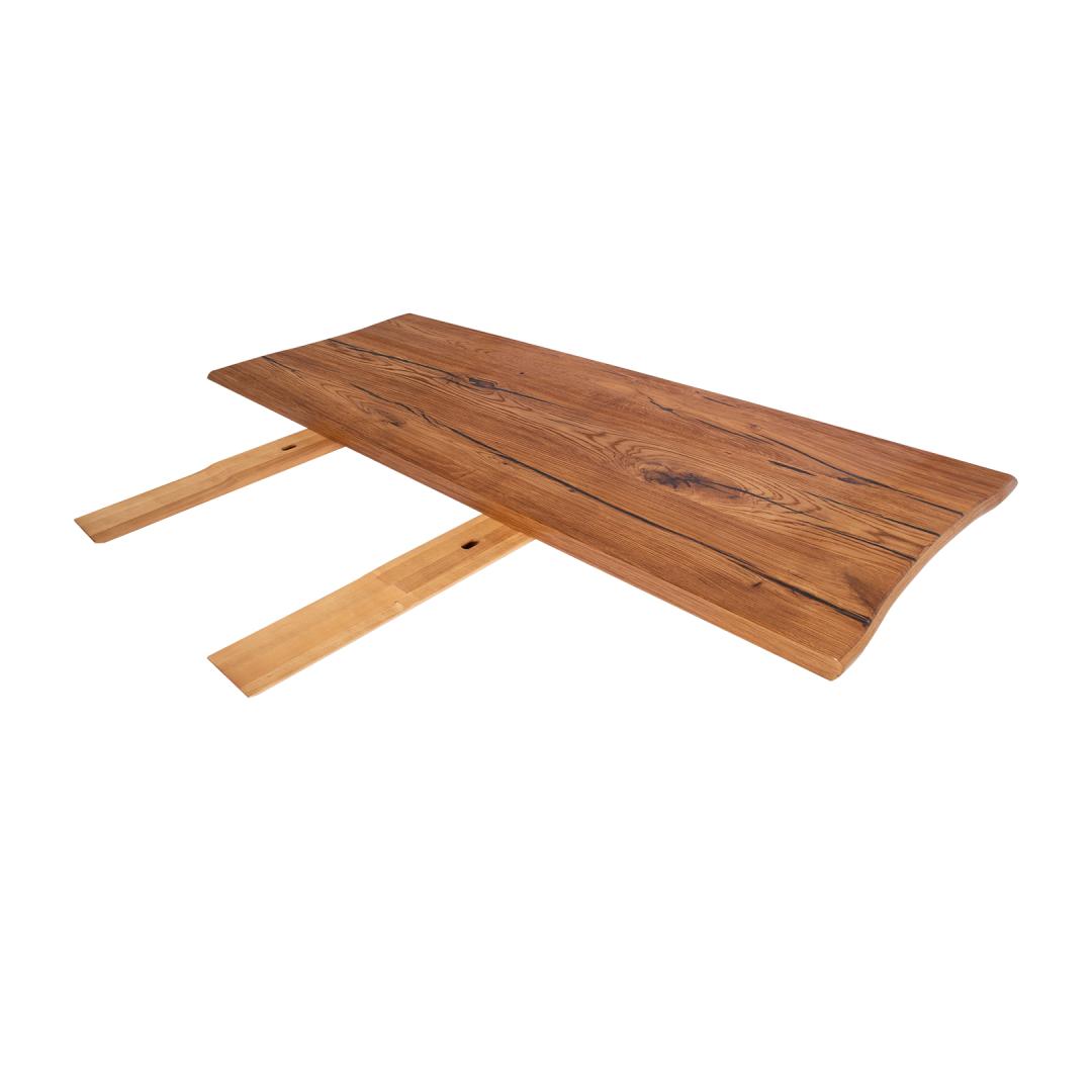 Table extension ROTTERDAM 50x100cm, oak. The table top made of furniture board is covered with a natural rustic oak veneer. Rustic veneer has a colorful and lively structure. Large knots, caulked cracks and lots of tonal variation are allowed. The table extension fits the ROTTERDAM dining table with code 18112.