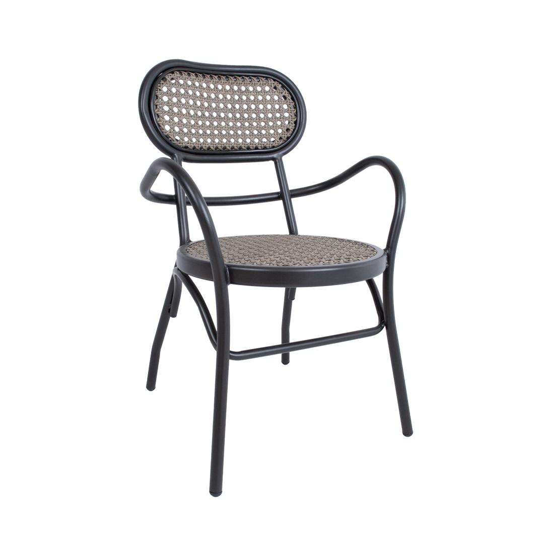 Chair BOLGHERI black. By placing garden chairs on the balcony, terrace or garden, you can create a cozy seating area where you can enjoy the beautiful weather during the day or spend cozy evenings. By choosing a suitаble tаble and combining similar products, you can create a harmonious set that you like. The seat and back of the chair are covered with gray plastic braid. The frame of the chair is made of black powder-coated aluminum. The dimensions of the metal tube are D25x1.8mm. The dimensions of the chair are 56x62xH83cm.