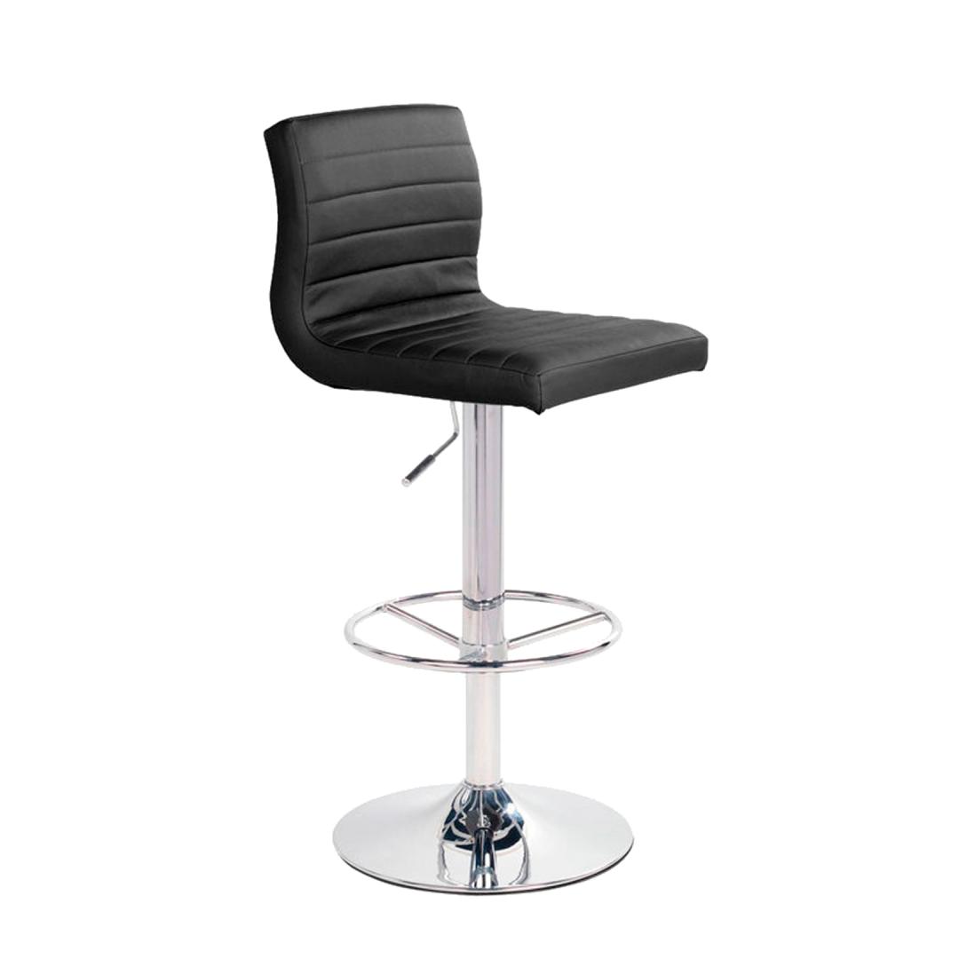 Bar stool AURA 46x42xH88-109cm, black. The upholstered seat of the chair is covered with black artificial leather. The chair has a chromed metal leg. The height of the chair is adjustable using a gas damper. Seat height 88-109cm, seat width 46cm, seat depth 42cm. Weight limit 100 kg.
