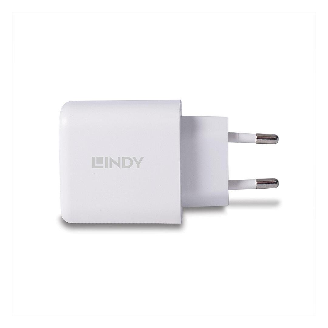 The Lindy 65W USB Type A & C GaN Charger can charge two devices simultaneously. 65W Power Delivery and PPS are supported by the USB Type C port while the USB Type A port provides fast charging with up to 45W. When both ports are used in parallel a maximum power of 20W will be provided. Featuring both a USB Type C female and a USB Type A female port this charger is ideal for use with most popular smartphones and iOS devices. Supporting power delivery of 65W and PPS (Progammable Power Supply), connected devices can be provided with faster and smarter charging than what is possible from a standard Type C charger supplied with many devices; it can modify voltage and current in real-time by feeding maximum power based on a device's charging status. For safe charging the device includes overcharge, overcurrent, overtemperature and short circuit protection. As this charger is rated at Level 6 for efficiency, it also meets the highest current level of energy efficiency standards.