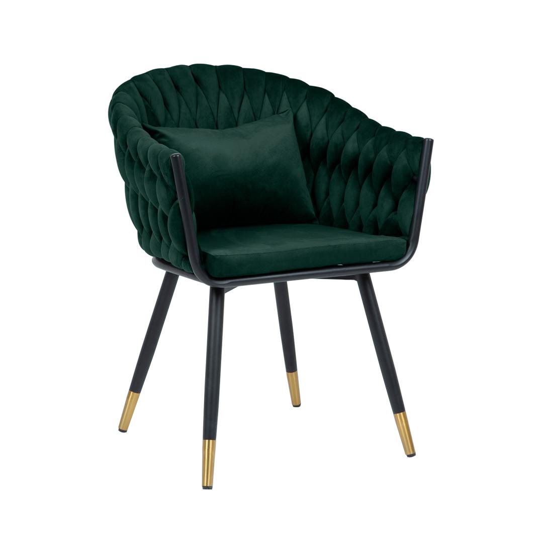 Tool FLORA tumeroheline samet. Tooli iste ja seljatugi on polsterdatud ja kaetud sametkangaga. Seljatoe mahuline, pehmeid laineid meenutav polster on saavutatud kasutades punumistehnikat. Väike lisapadi tooli seljatoel tagab suurema istumismugavuse. Padja mõõdud 38x28cm. Kattematerjal: 100% polüester, 260g/m². Martindale 25 000. Tooli jalad ja raam on valmistatud metallist ja viimistletud musta pulbervärviga, jalgade alumised otsad on kuldsed. Tooli üldmõõdud on 61x63xH83cm, istme laius 45cm, istme sügavus 46cm, istme kõrgus 50cm. Seljatoe kõrgus 38cm. Kaalupiirang 120kg. Tool FLORA tumeroheline samet. Tooli iste ja seljatugi on polsterdatud ja kaetud sametkangaga. Seljatoe mahuline, pehmeid laineid meenutav polster on saavutatud kasutades punumistehnikat. Väike lisapadi tooli seljatoel tagab suurema istumismugavuse. Padja mõõdud 38x28cm. Kattematerjal: 100% polüester, 260g/m². Martindale 25 000. Tooli jalad ja raam on valmistatud metallist ja viimistletud musta pulbervärviga, jalgade alumised otsad on kuldsed. Tooli üldmõõdud on 61x63xH83cm, istme laius 45cm, istme sügavus 46cm, istme kõrgus 50cm. Seljatoe kõrgus 38cm. Kaalupiirang 120kg.