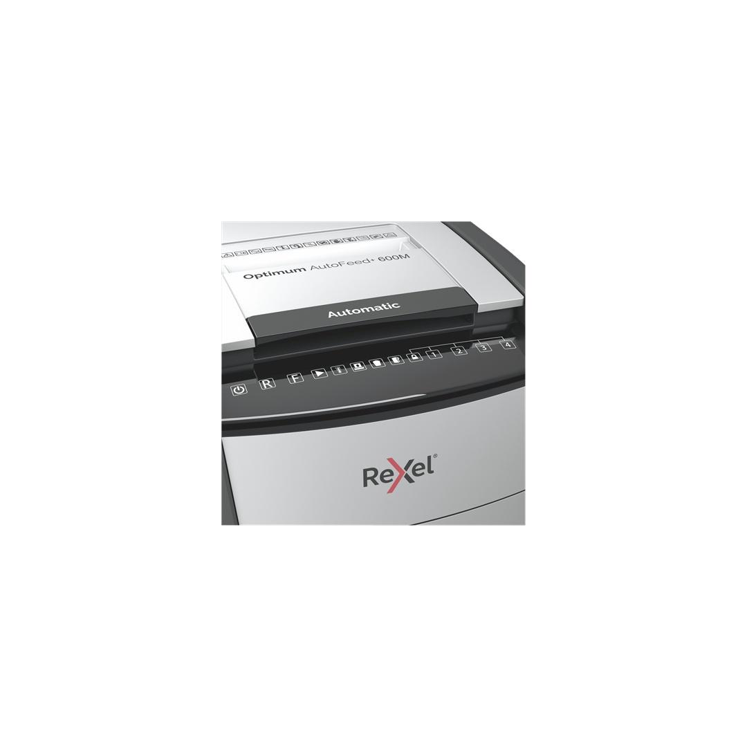 Rexel AutoFeed+ 600M Paper Shredder Micro cut shredding 2x15mm P-5 110L, 55 dB, Grey/Black