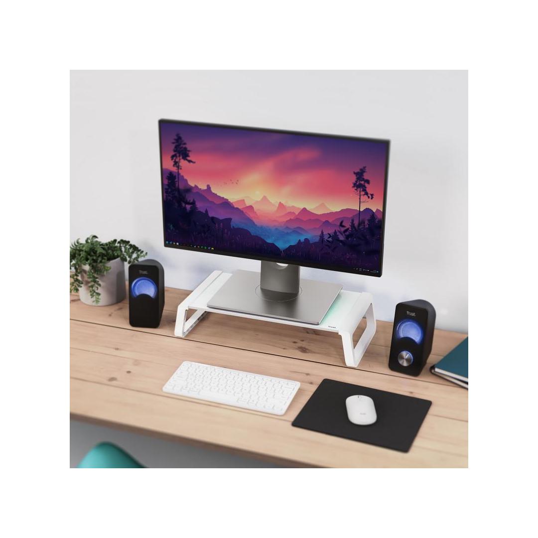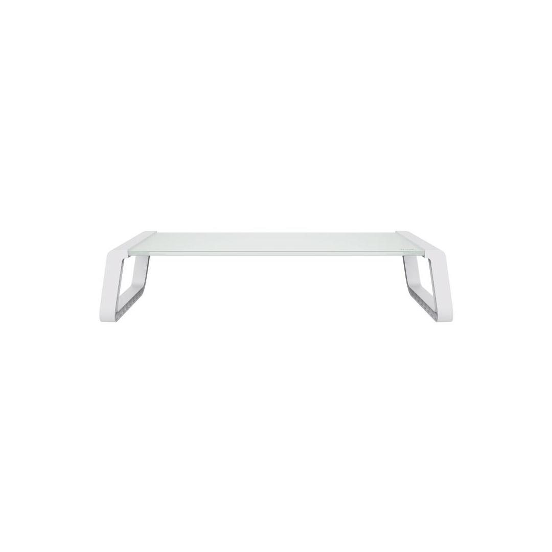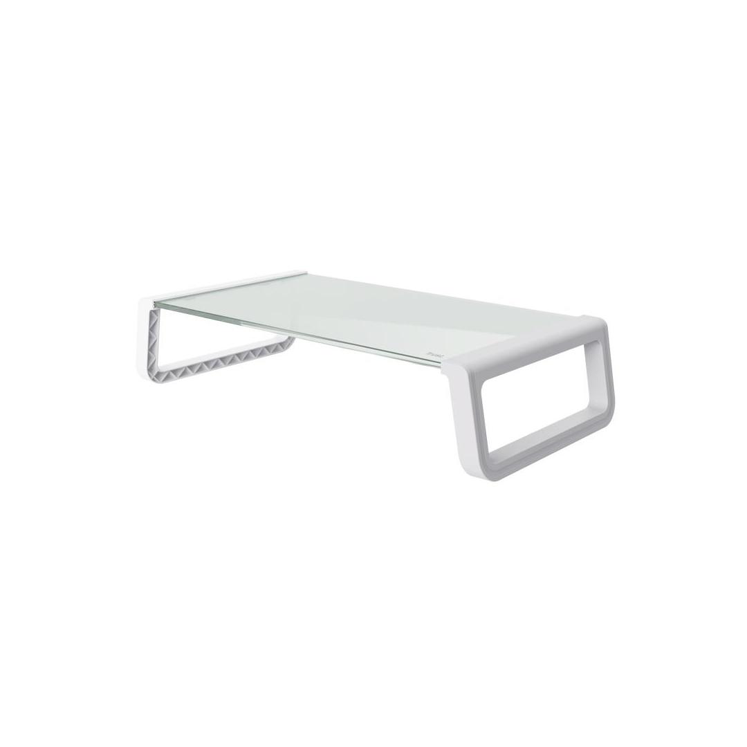 Tempered glass monitor stand for an ergonomic working position and organised desk