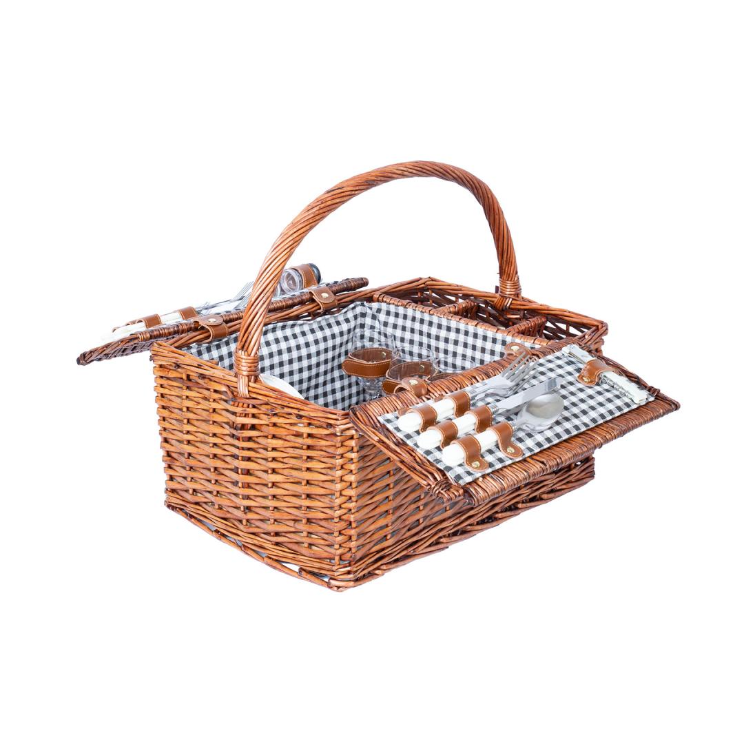 Plates and glasses are dishwasher safe. Elegantne pajuvitsast sangaga korv koos lauanõudega.