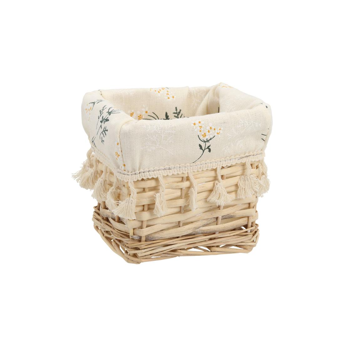 Textile lining: cotton floral fabric. Korvi materjal: käsitsi punutud naturaalne pajuvits.