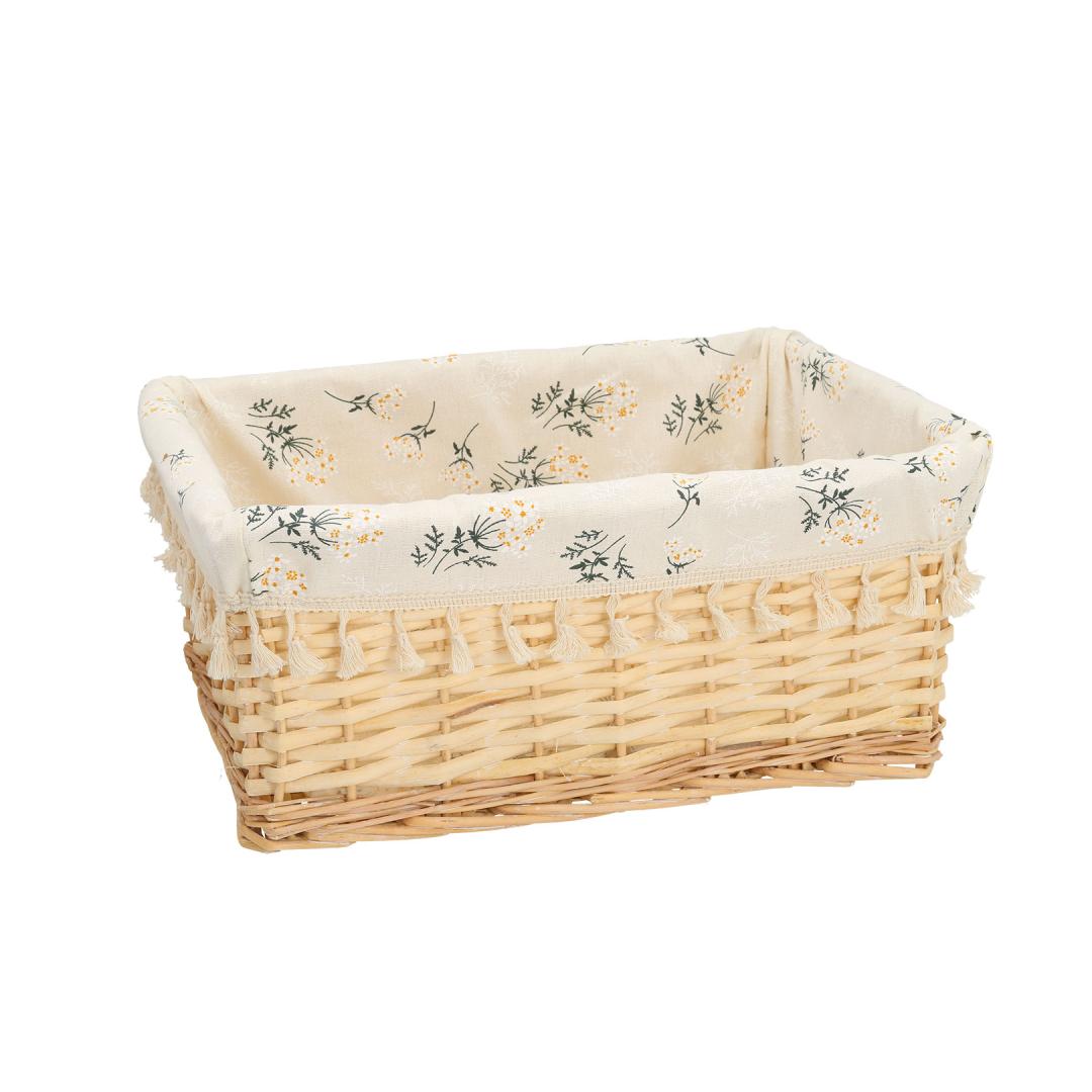 Textile lining: cotton floral fabric. Korvi materjal: käsitsi punutud naturaalne pajuvits.