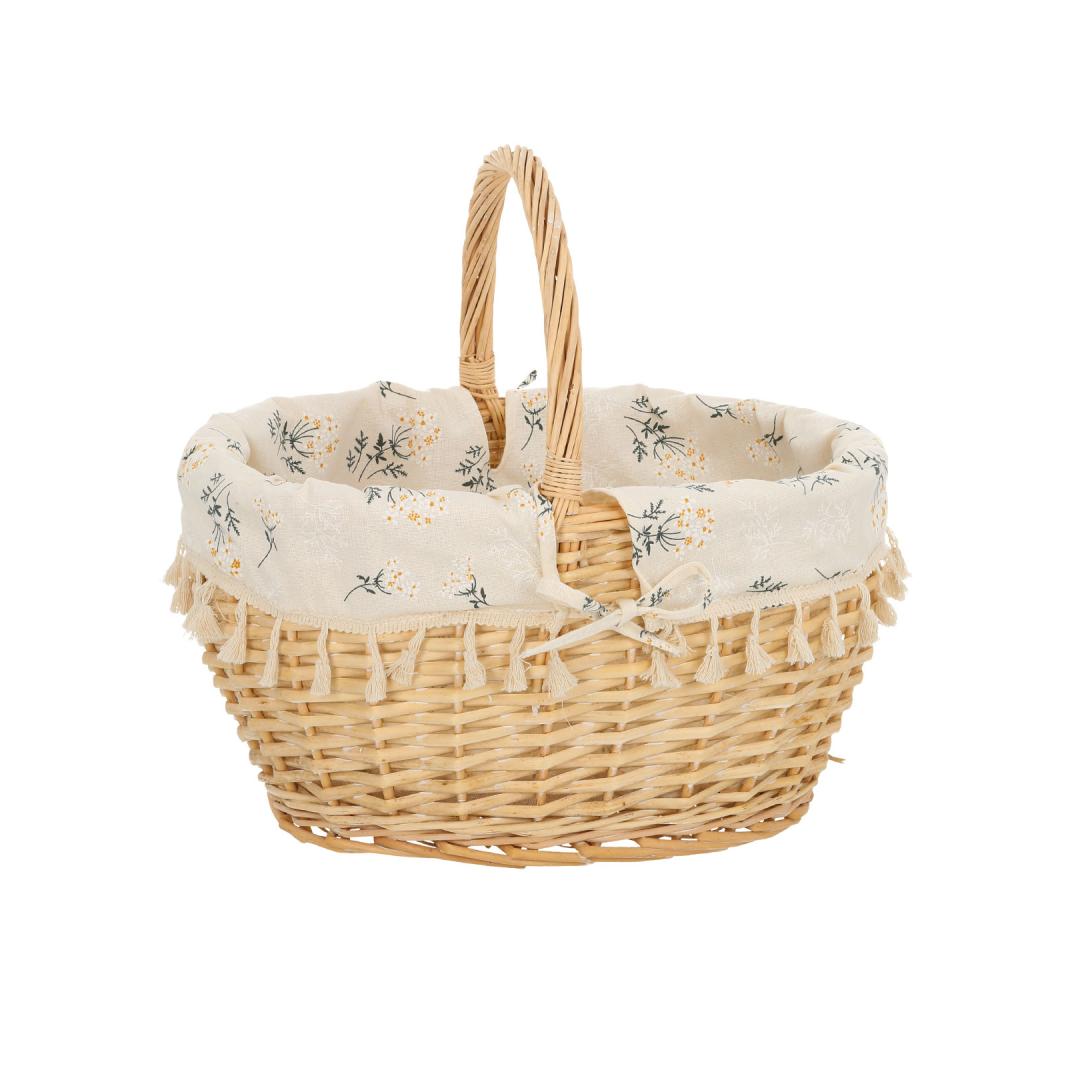 Textile lining: cotton floral fabric. Korvi materjal: käsitsi punutud naturaalne pajuvits.