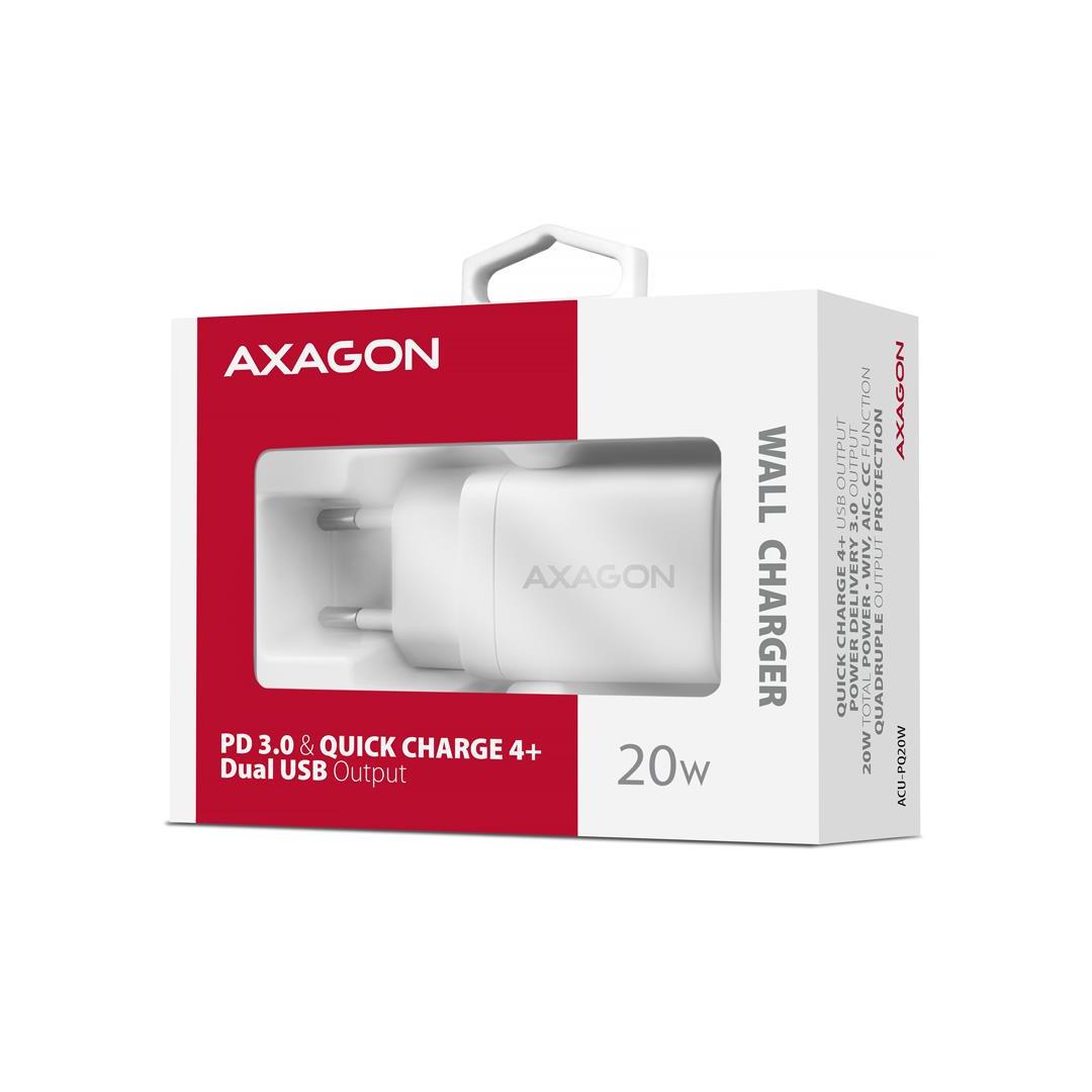 MOBILE CHARGER WALL USB 20W/2PORT WHITE ACU-PQ20W AXAGON
