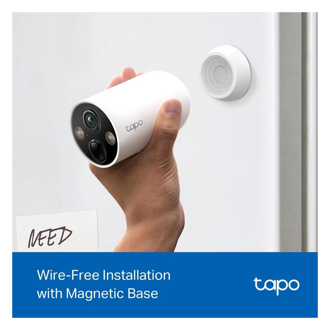 Colour White, Included Accessories Tapo C425 CameraUSB AdapterUSB Adapter CableMounting TemplateMagnetic BaseMounting ScrewsMounting AnchorsMetal Plate3M AdhesiveQuick Start Guide
