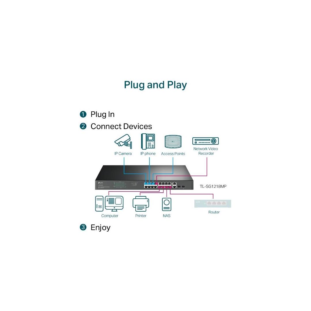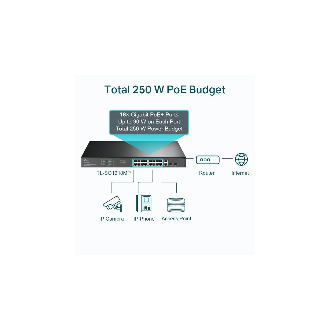 Switch TP-LINK TL-SG1218MP Desktop/pedestal Rack 16x10Base-T / 100Base-TX / 1000Base-T PoE+ ports...