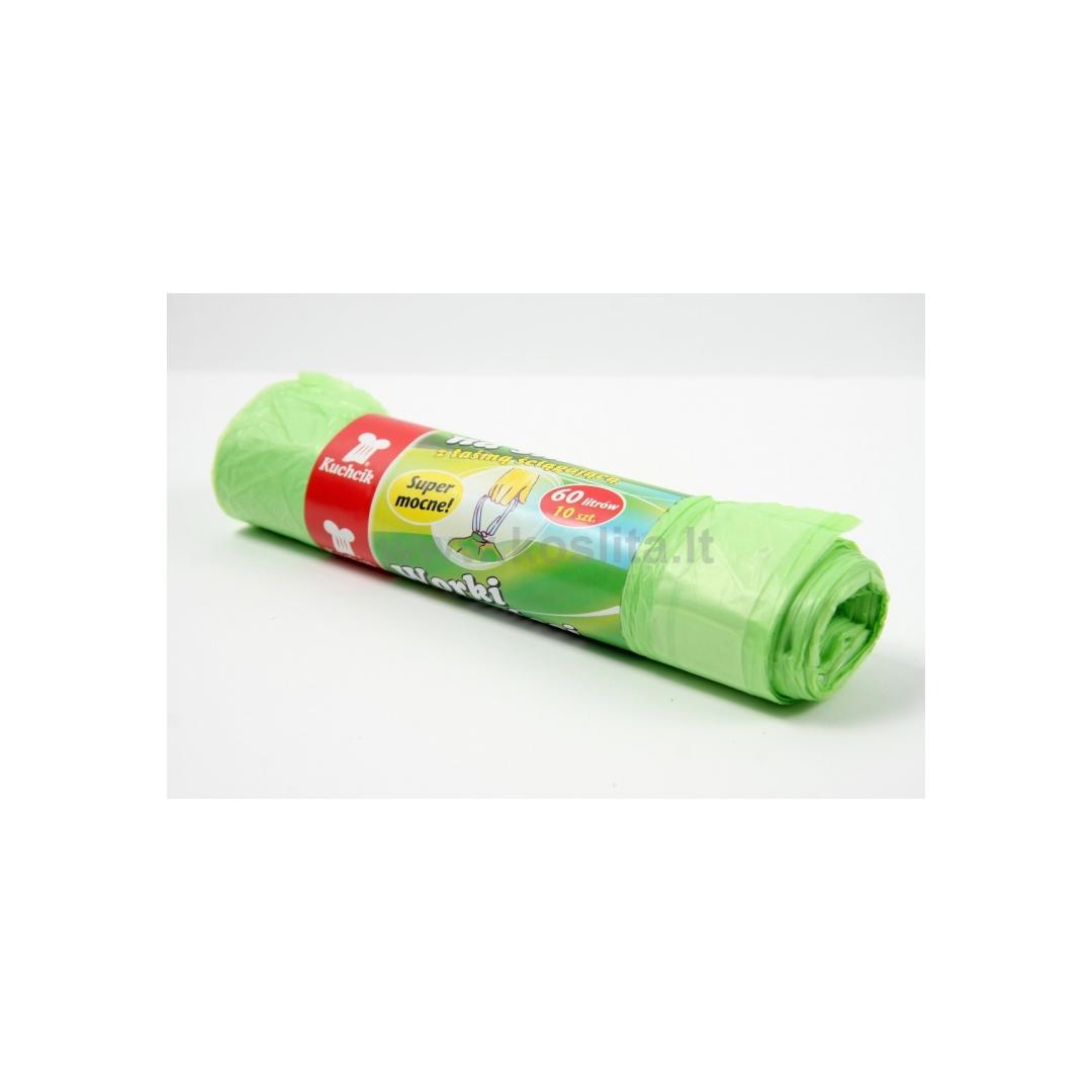 Drawstring Trash Bags, 60l/10pcs., HDPE, green