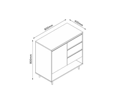 Kummut HERTA 3-sahtli ja 1-uksega 80x40xH80cm, valge/hele puit.