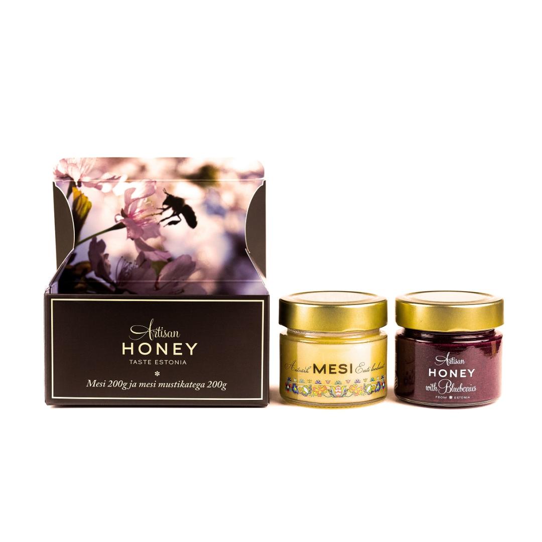 Artisan Honey Blossom honey 200 g + honey with blueberries 200 g in a cardboard gift box