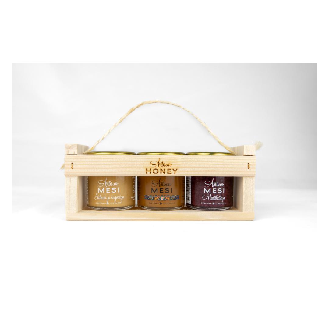 Artisan Honey set 3x50 g in wooden flag box