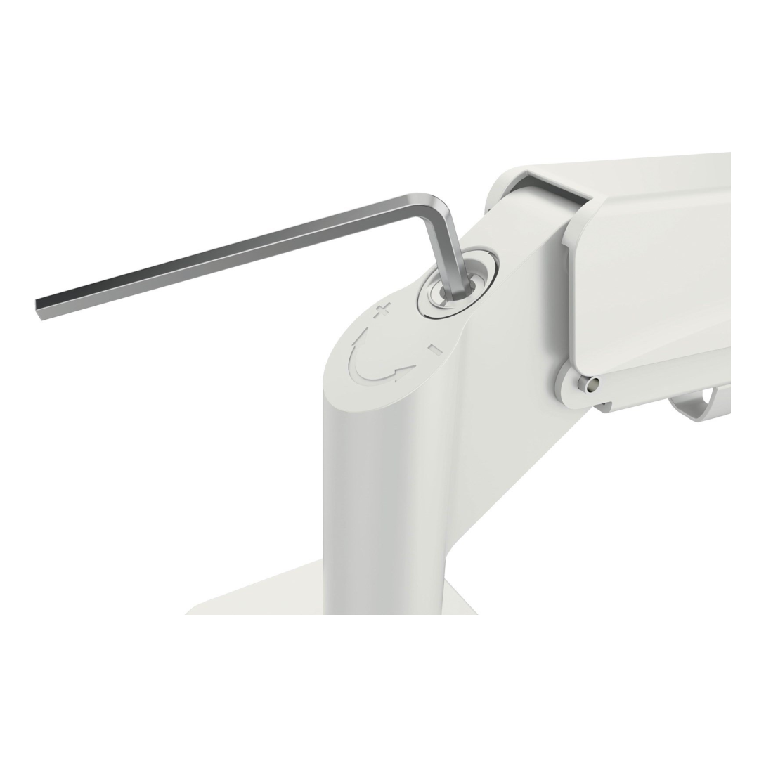 TÜV and IGR certified ergonomic single monitor arm that can improve posture, eye alignment and neck and shoulder comfort when the height of the monitor is adjusted correctly Space saving design allows it to be mounted in small spaces while still providing maximum depth of field and optimal visual ergonomics Spring-assisted single arm to easily adjust the monitor height (185mm-435mm) Easy height, depth and angle adjustment with just one hand: +90°/-90° left & right swivel, up to 180° horizontal & vertical monitor rotation, +55°/- 55° screen tilt Strong and stable design to support 17”-32” flat or curved monitor weighing up to 9 kg (19.8lbs) Easy to install with the included quick release detachable Vesa® plate (75 and 100mm) and silicon rubbered c-clamp that will reduce vibration and protect the desk surface or by grommet hole (desktop thickness range: 10–80mm). Tools for assembly and adjustments included Cable management system keeps monitor cables organised for a tidier workspace Tested and recommended by the German IGR Institute for Health and Ergonomics, according to DIN 26800 EN ISO 15537 and TÜV certified