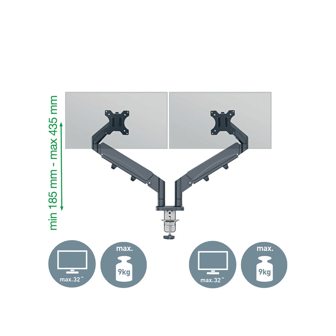 Monitor Arm Ergo SpaceSaving Dual D.Grey