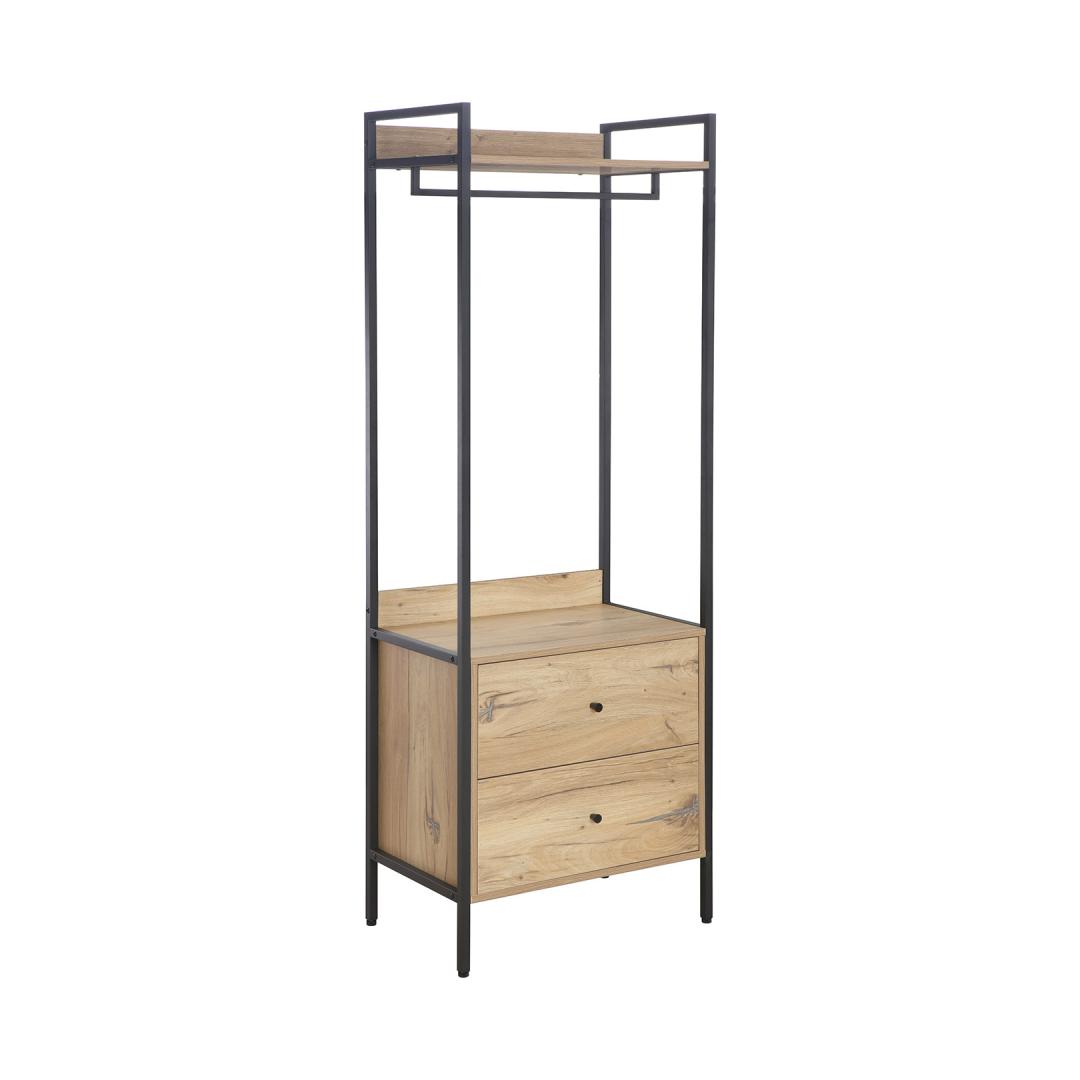 Under the top shelf, there is a rod for hanging cloth hangers. Esikuriiul HANNES 2-sahtliga 64x40xH180cm, rustik melamiin.